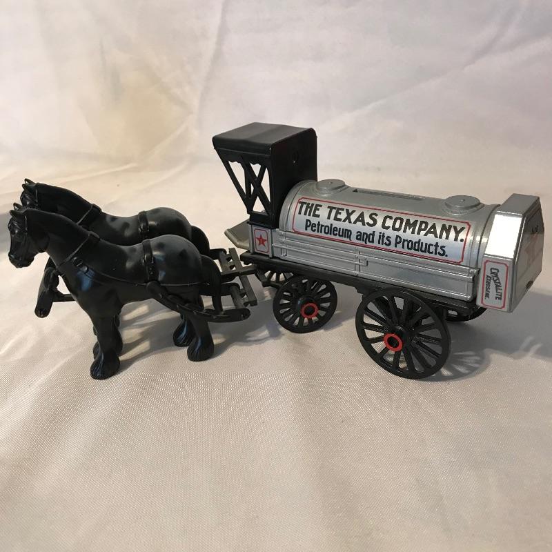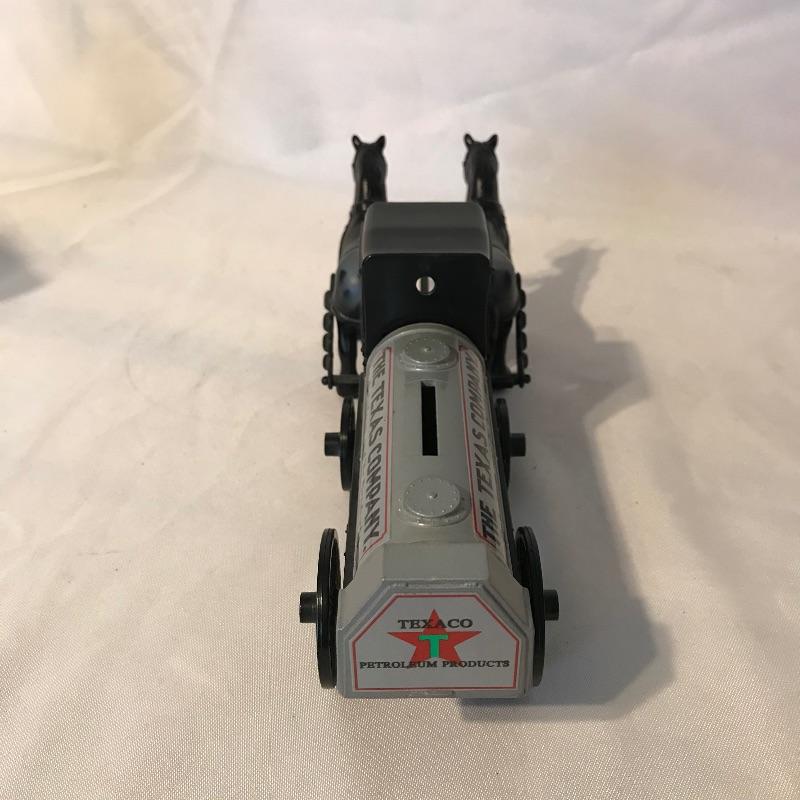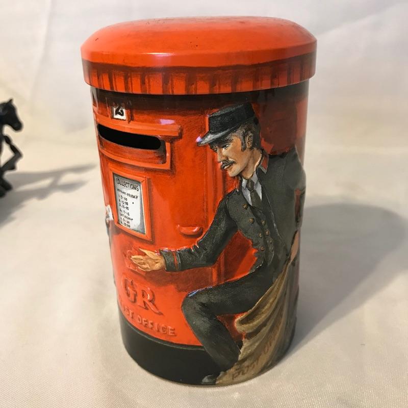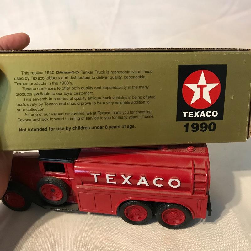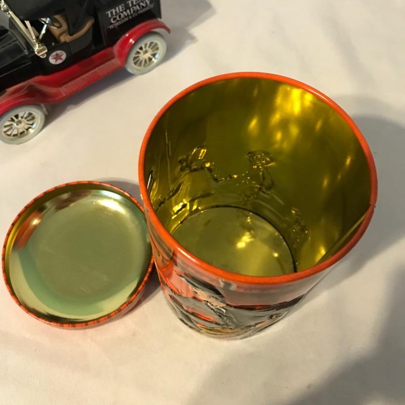Four Texaco coin banks with keys and one coin bank tin. The Texaco coin banks are metal and plastic, the two with boxes state “Die Cast“. All appear in great condition. The tin is an old sweet treat tin with a familiar scene. At about 3.25”d x 5.25”, it’s perfect for saving all of your pennies. See photos. Shipping available.