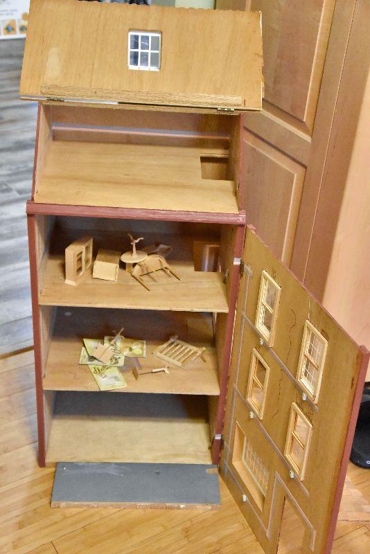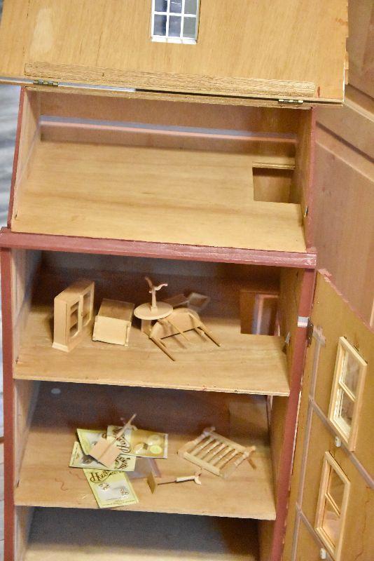 Townhouse doll house with some furniture.