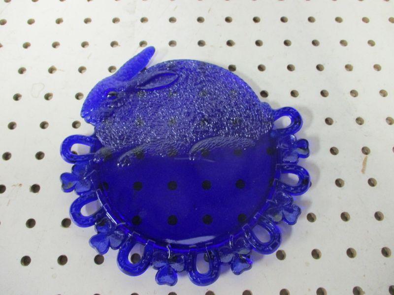 Lot 78 - Cobalt Blue Glass Lucky Bunny Plate - Westmoreland