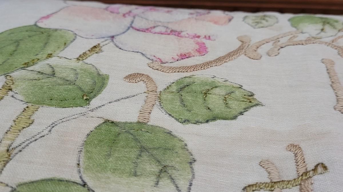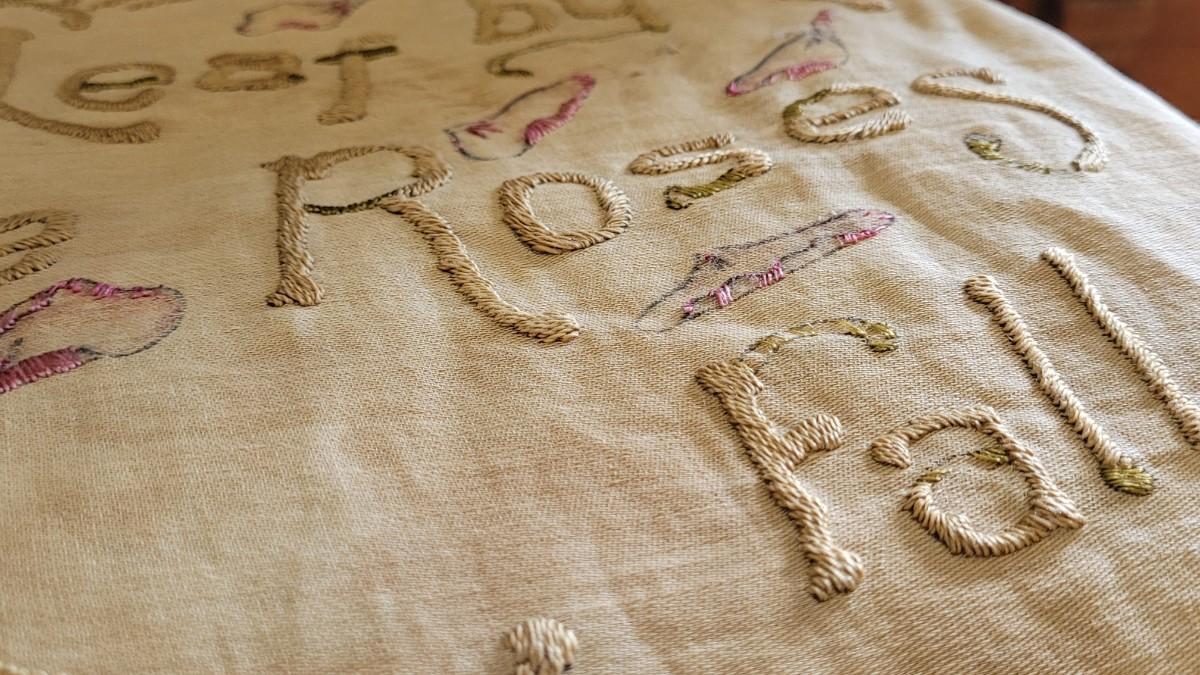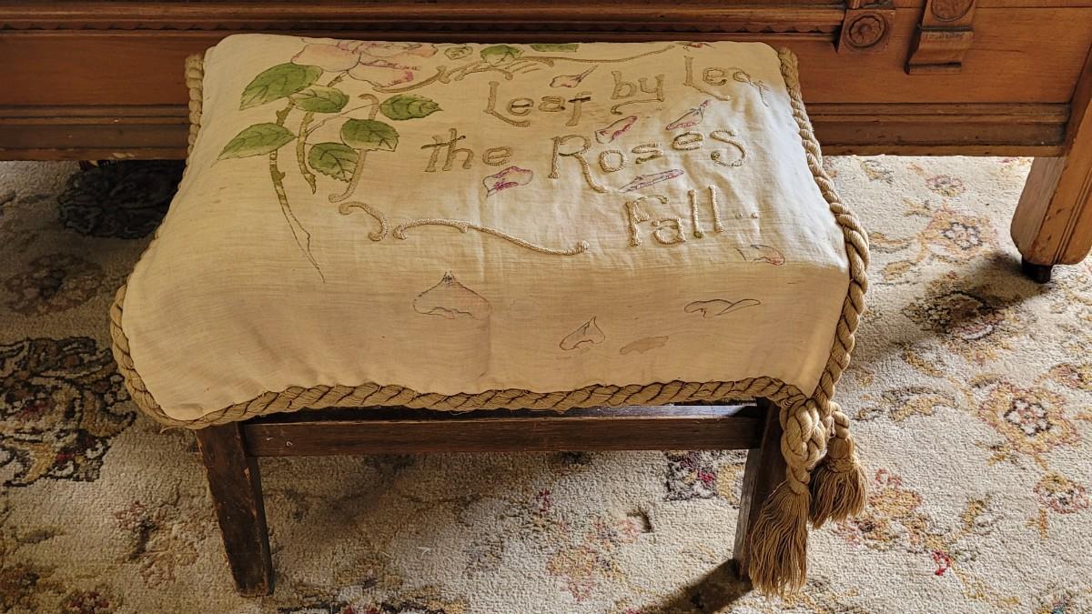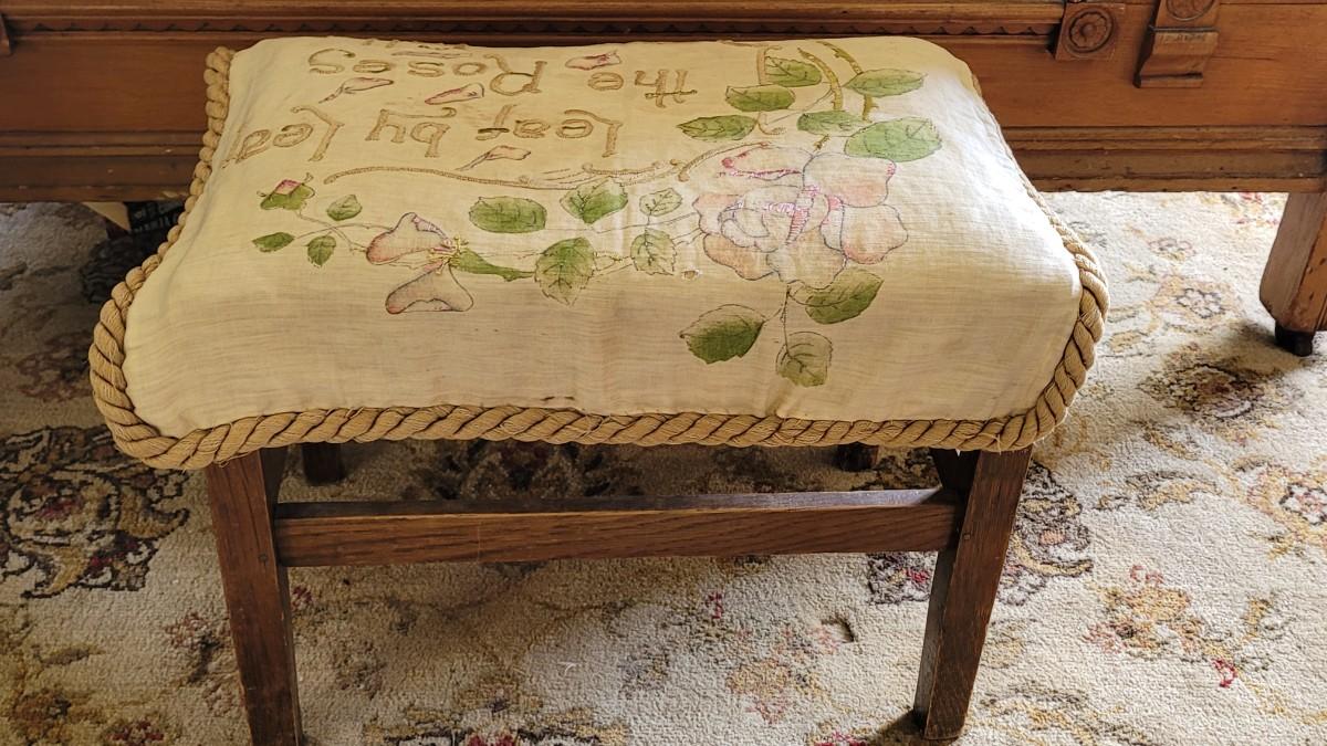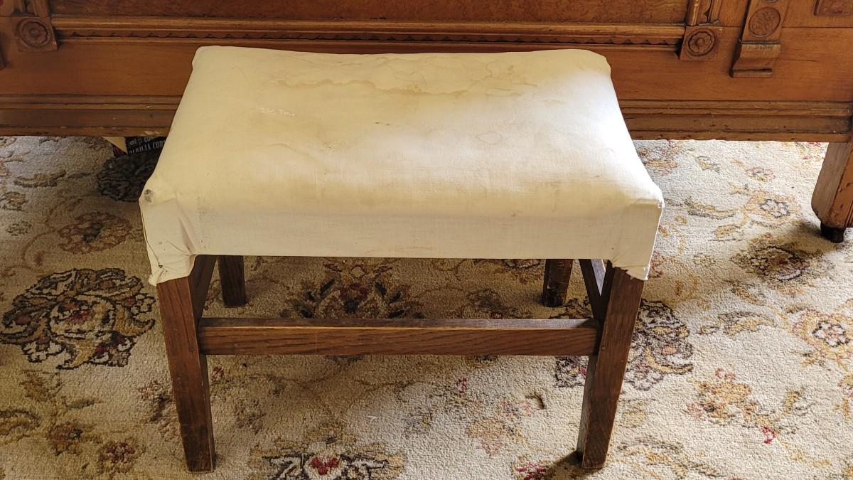 Lot 78: Antique/Vintage Stool with Antique Partial Hand Stitched Pillow Case Covering