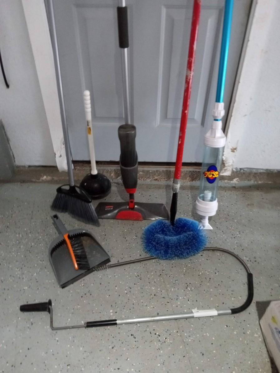 FLOOR CLEANING TOOLS, SEWER SNAKE, TOILET PLUNGER, SPA VAC