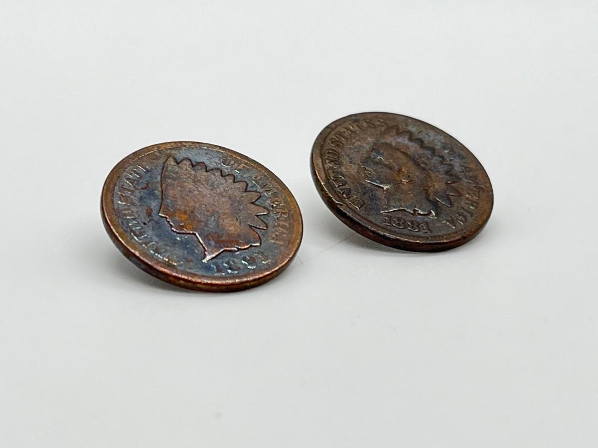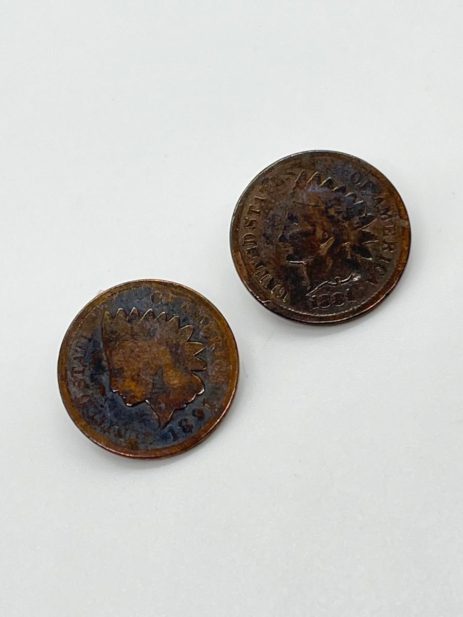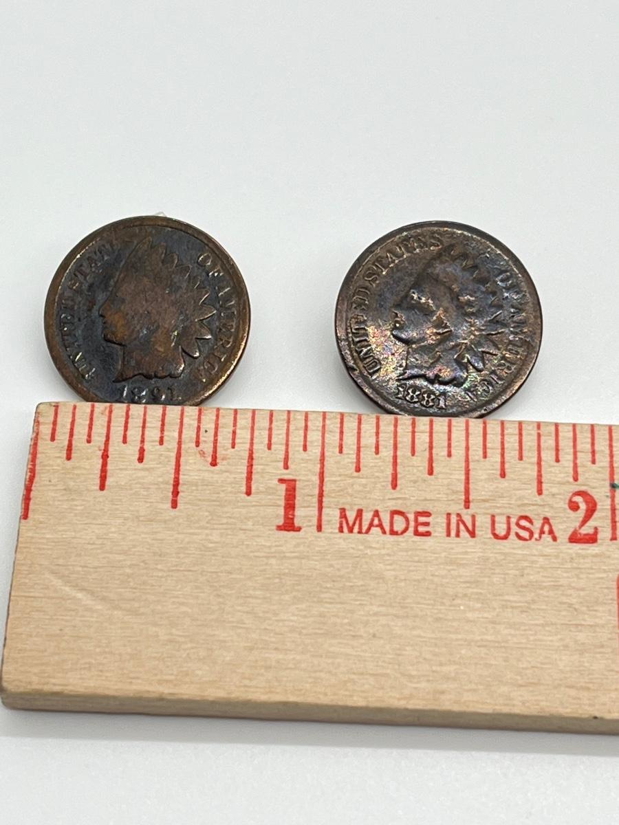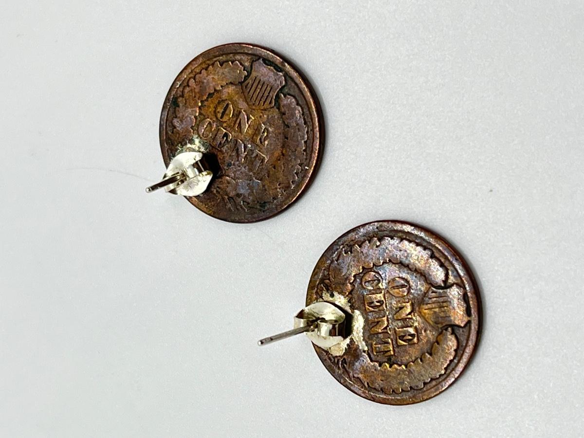 LOT 78: Vintage - Possibly Pink Amber Collar Pins and Handmade Indian Head Copper Penny Pierced Earrings