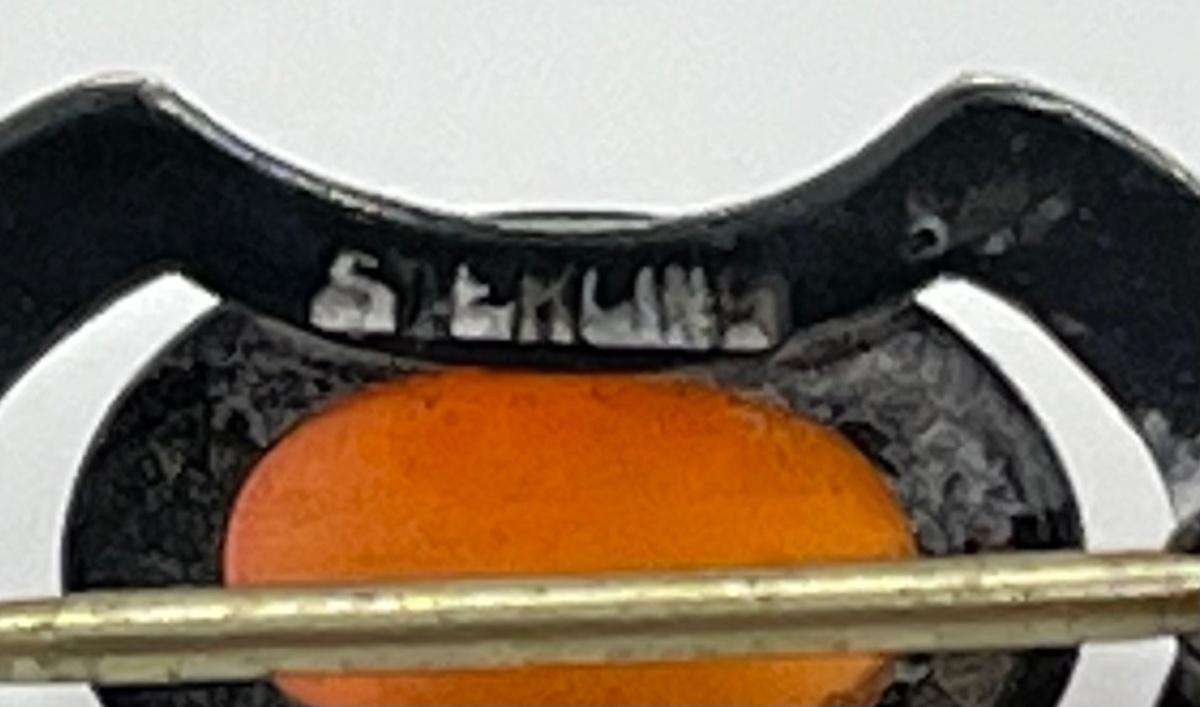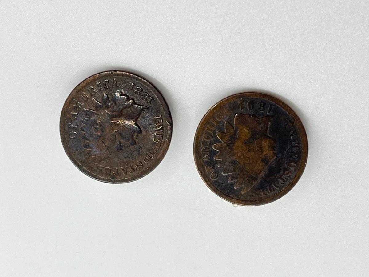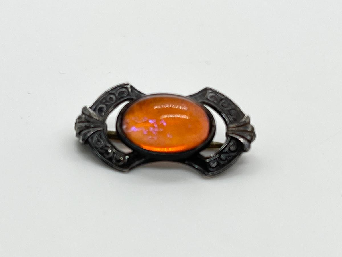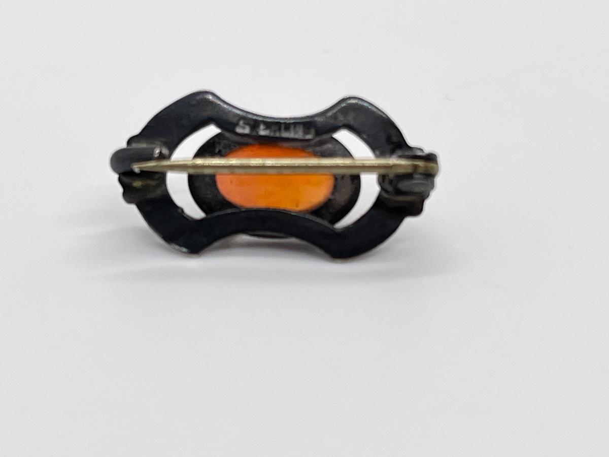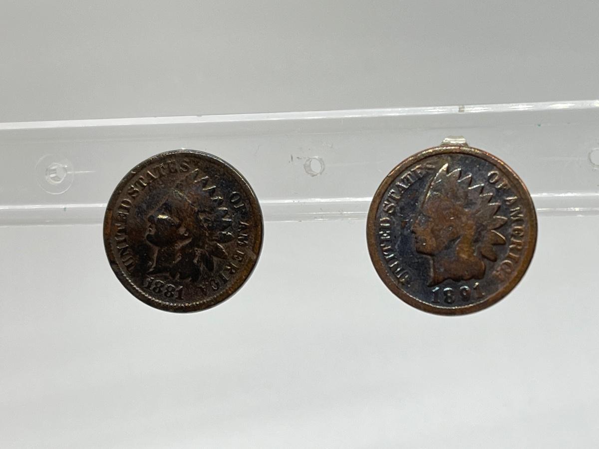 LOT 78: Vintage - Possibly Pink Amber Collar Pins and Handmade Indian Head Copper Penny Pierced Earrings