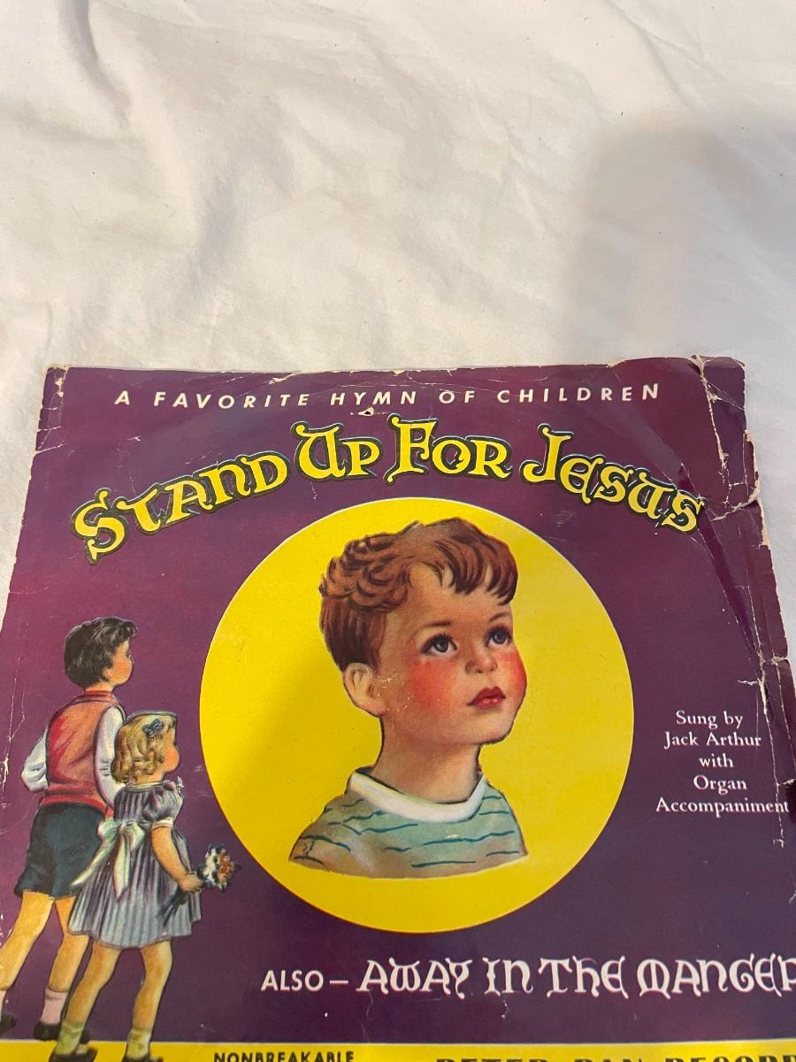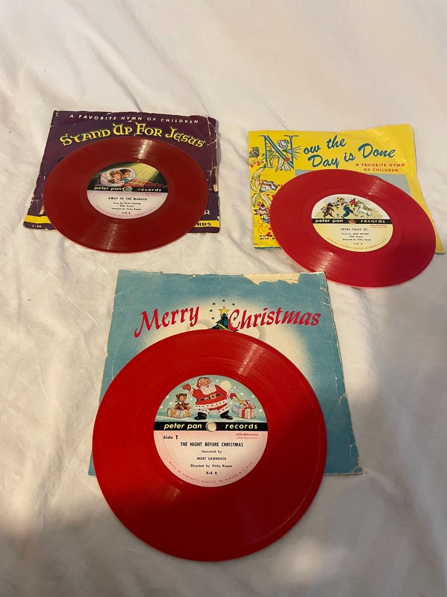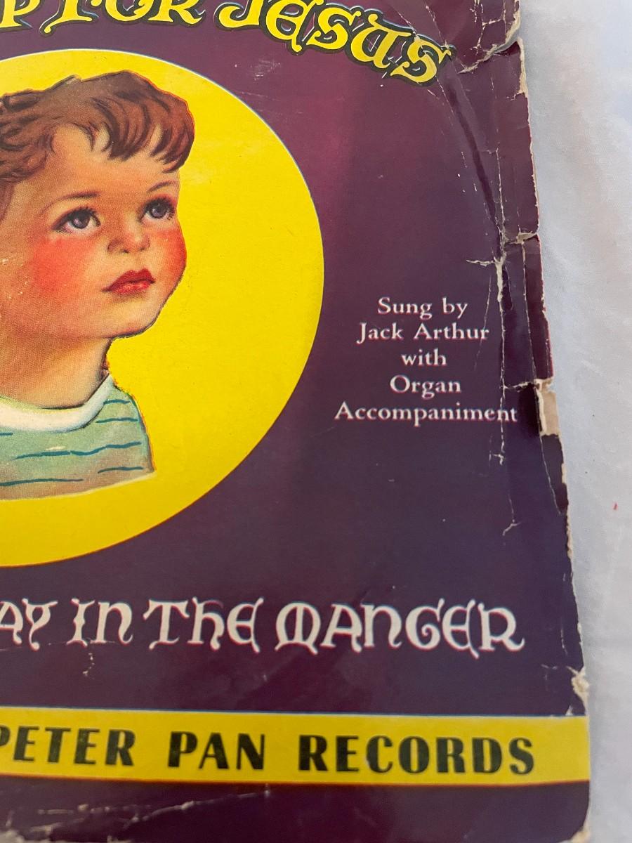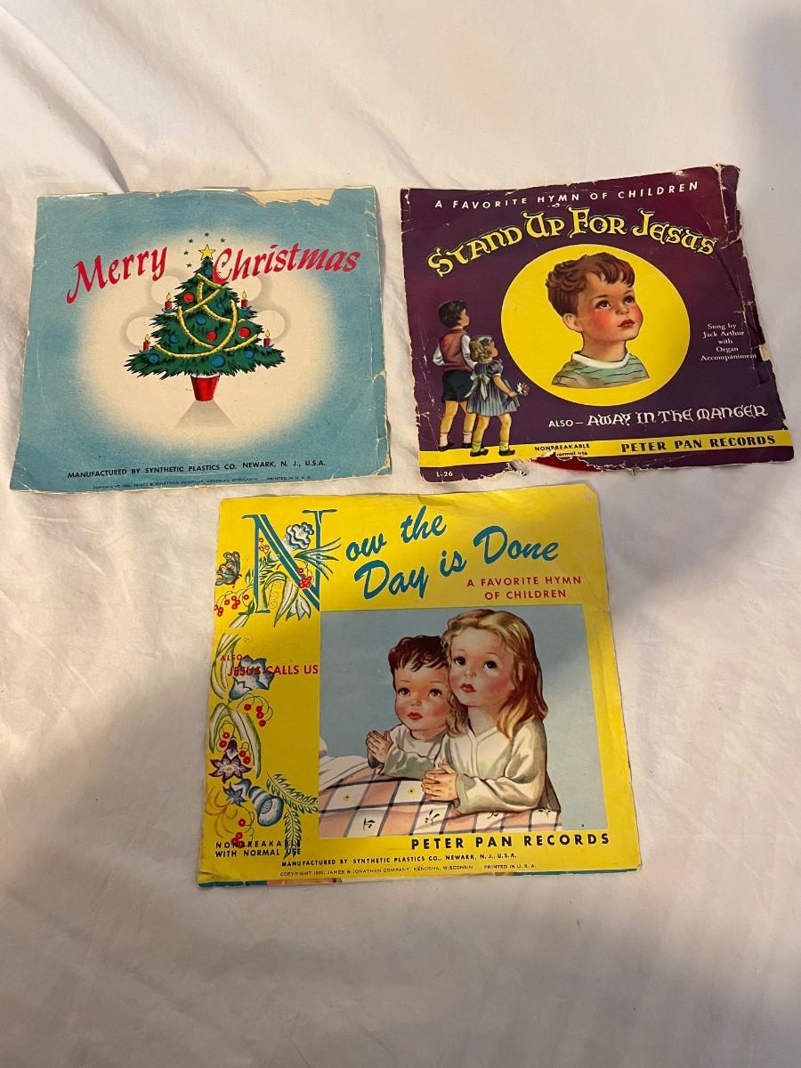 VINTAGE COLLECTABLE CHILDRENS CHRISTMAS RECORDS. PETER PAN RECORDS PRESENTS STAND UP FOR JESUS, NOW THE DAY IS DONE AND MORE!