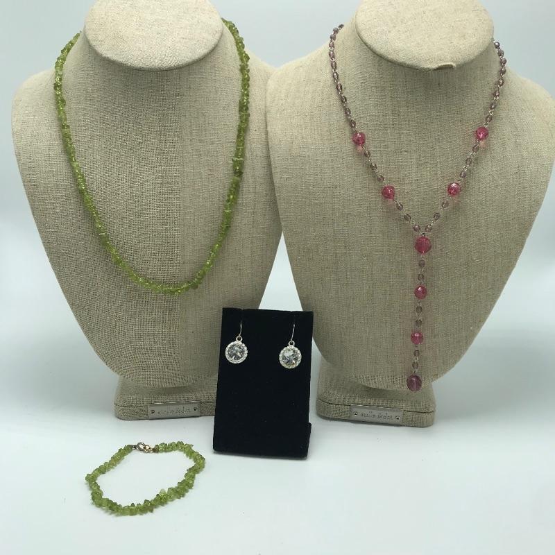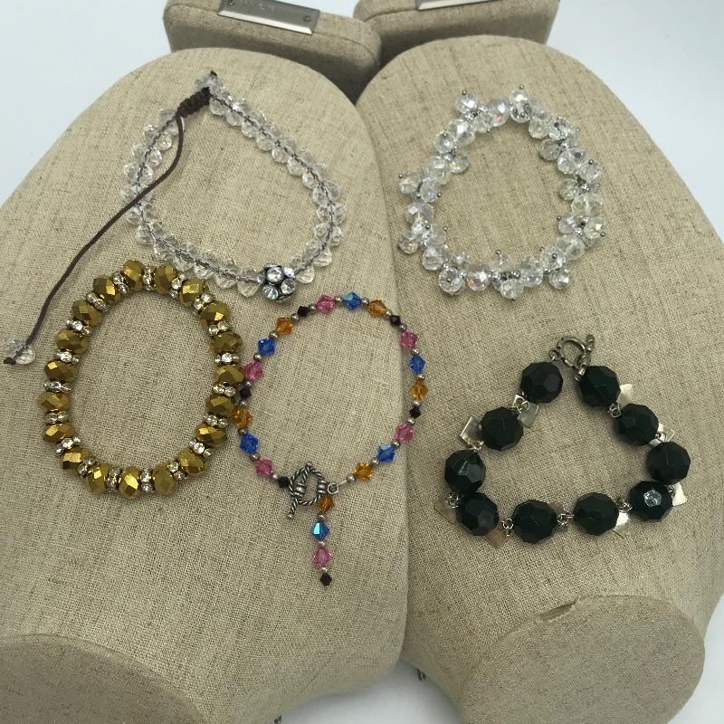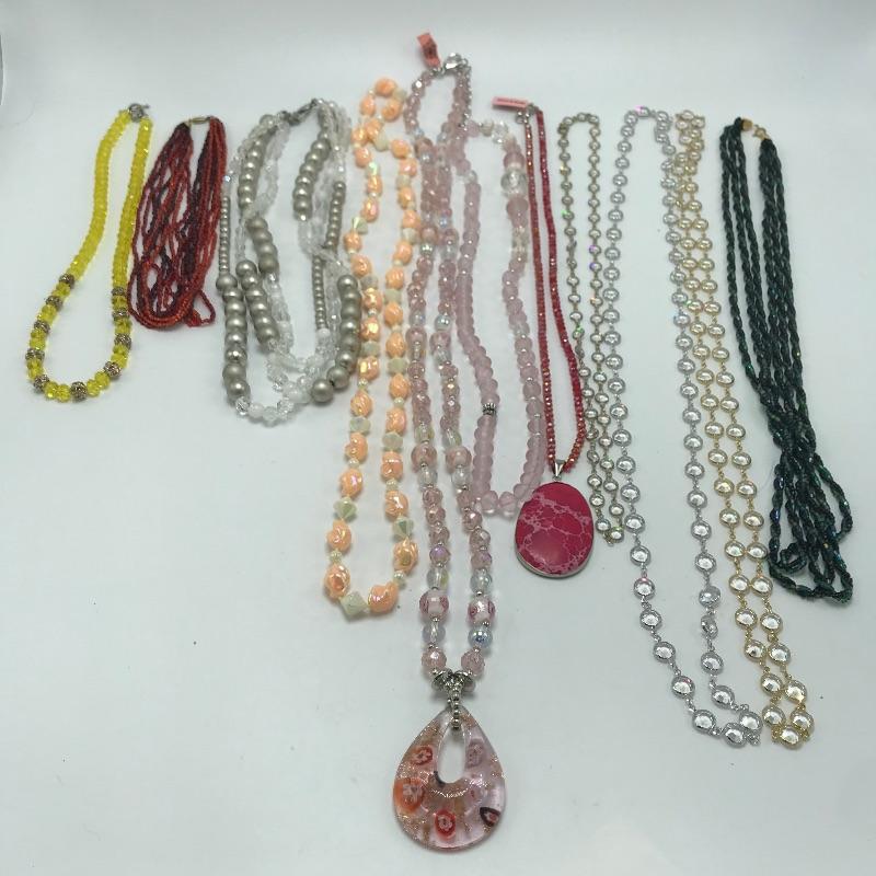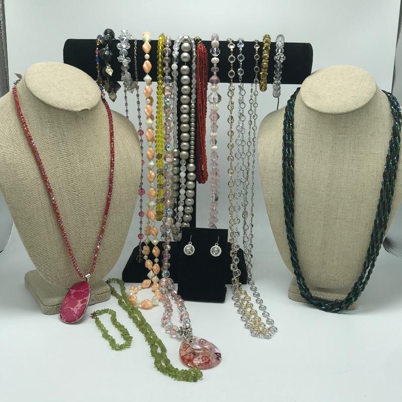 Add some sparkle to your step with this fine collection of sparkly and beaded necklaces and bracelets. Some appear never worn. See photos.