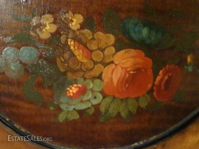 LOT 78: BERKEY & GAY TALL CHEST, PAINTED FRUIT DESIGNS, 6 DRAWERS, METAL RACK, 38"W X 21"D X 54"HSKU925