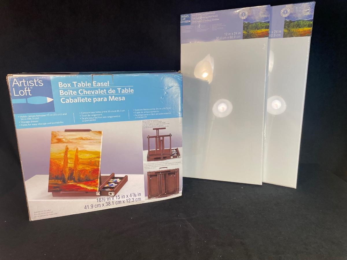 Lot 78. Box Table Easel and Canvases