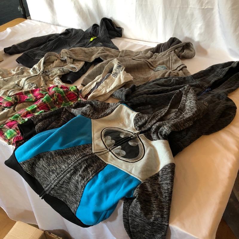 Jackets, shoes & clothes, oh my! This lot includes 6 jackets, pants, jeans, pajamas, sweats, tank tops, t-shirts and shoes. Sizes range from 4T - 8. Local pick up only.