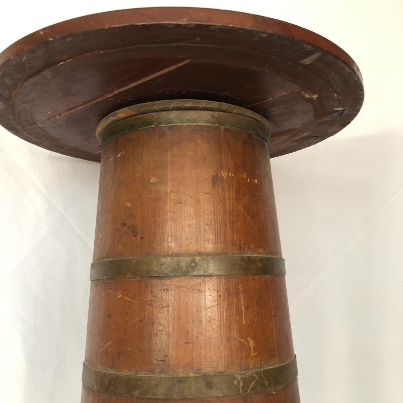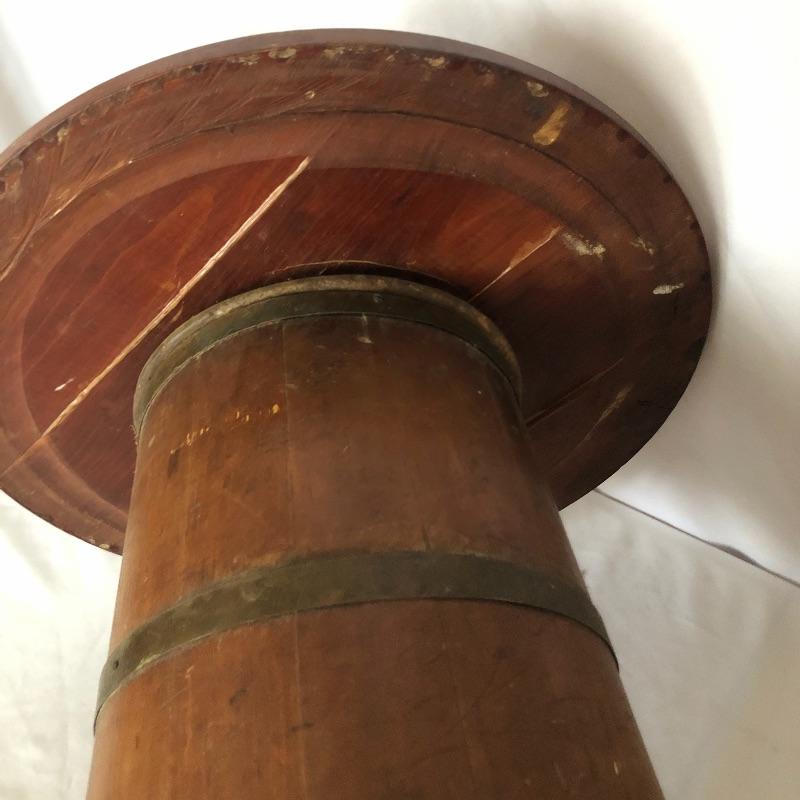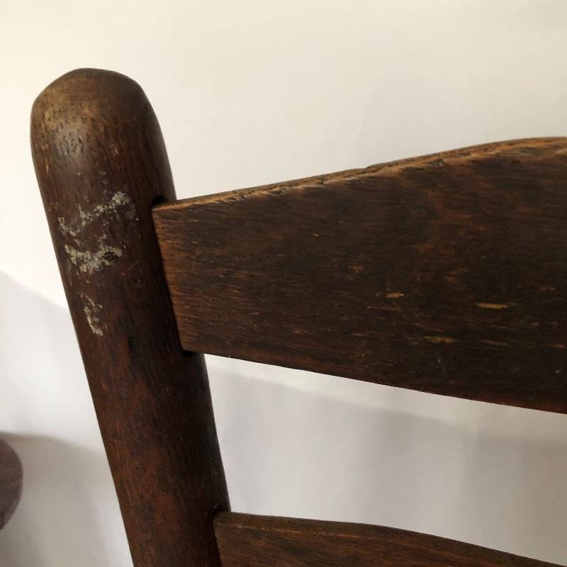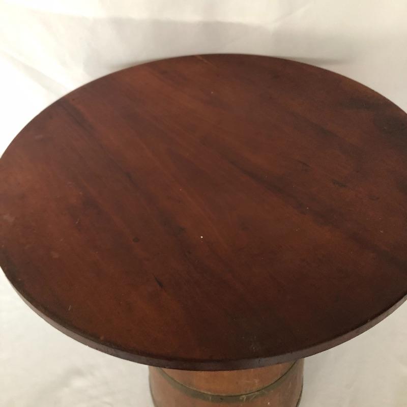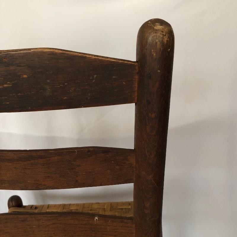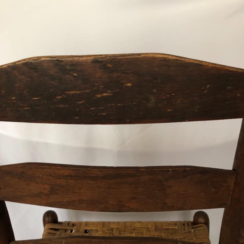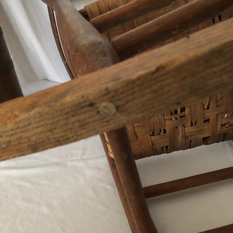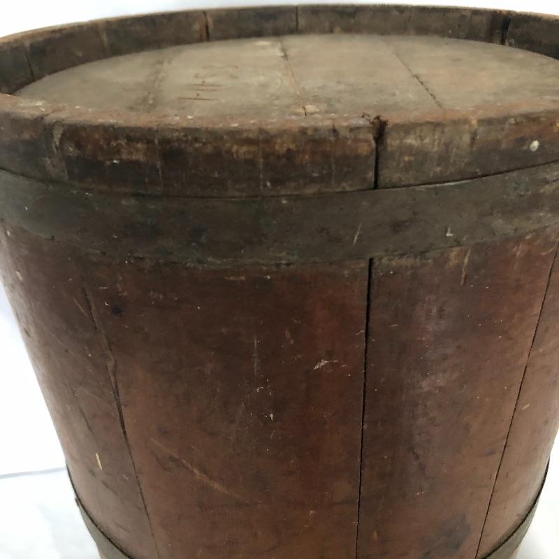 The sturdy rocker appears to be made of oak and is in good shape. It measures approximately 32” tall with the seat about 15” high and 13.5” deep. The butter churn table is 20” tall and approximately 18.5” in diameter. The butter churn has four metal rings encapsulating it and has the date July 11, 53 on the bottom. It is assumed that it was crafted on that date. Local pick up only.