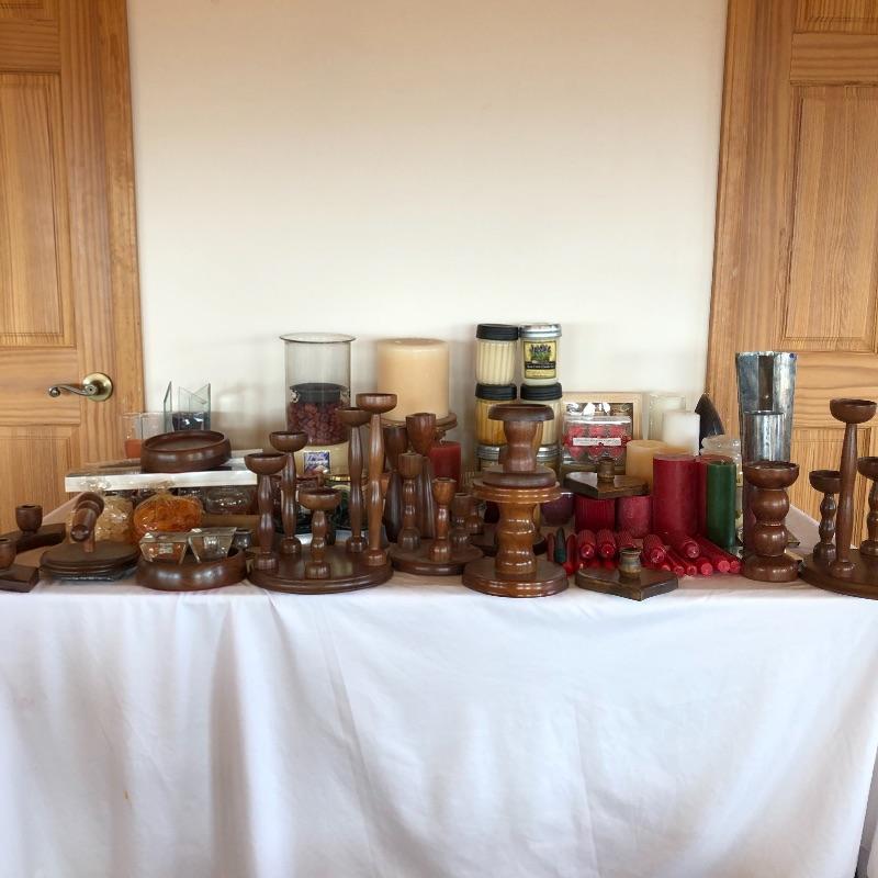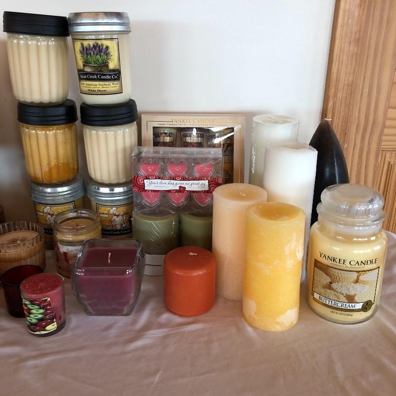 You won’t have to worry if you lose power with this collection of candles and more. Lot includes wooden candle holders in a variety of styles and sizes, two candle molds, candles in a variety of styles, metal candle holders and a whole lot more. Largest candle measures 5.5”D x 6” tall