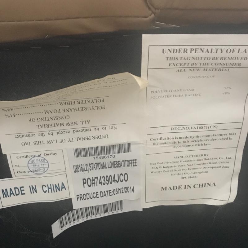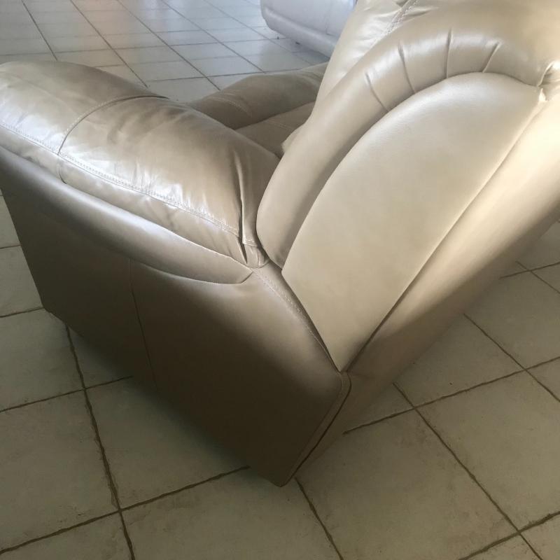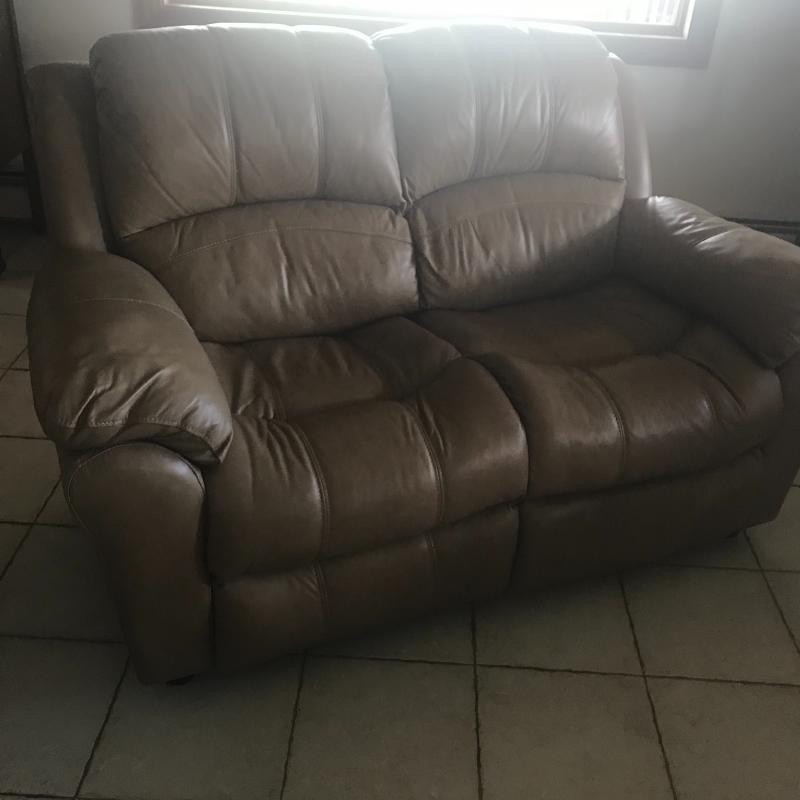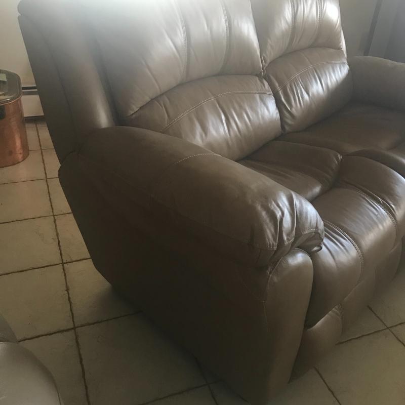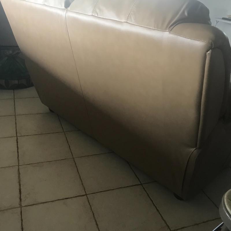 All new man made materials in this leather-like love seat measuring 78” x 38” x 39”. Good condition. Local pick up only.