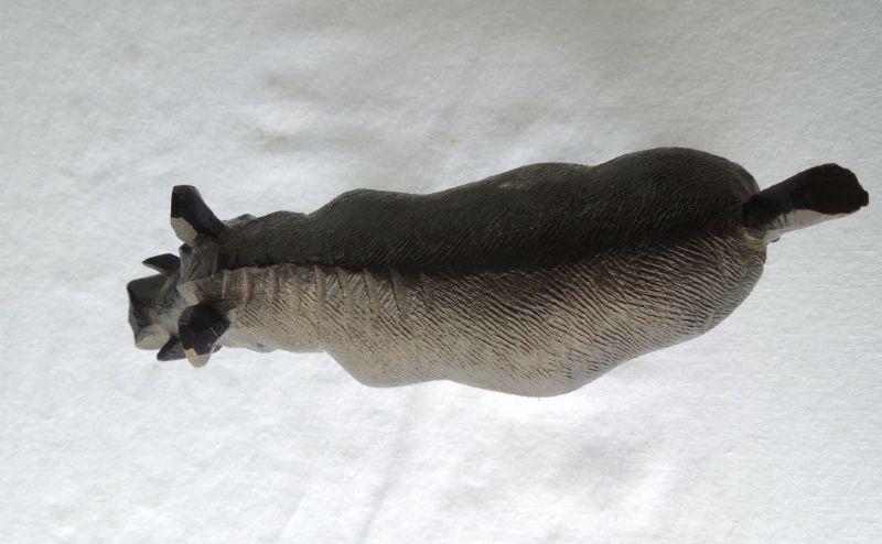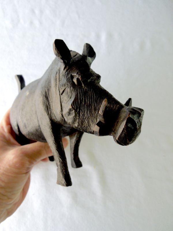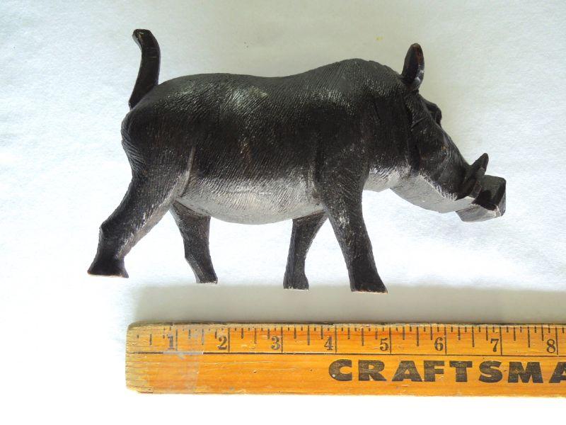 Hand carved from Africa. Nice rasp marks and detail. Has some residue on one side that appears to be removable. 7" L x 4.5" H. Not signed. Dense ebony wood.