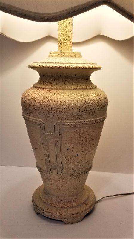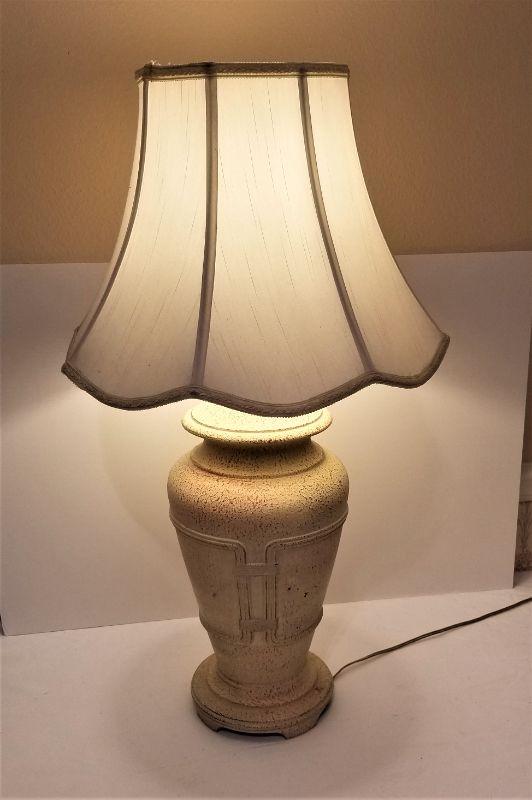 Nice working contemporary table lamp - stoneware base. Scalloped shade. Stands 29" tall. Heavy.