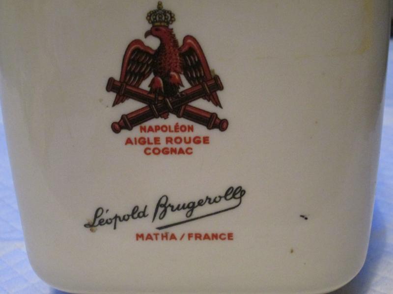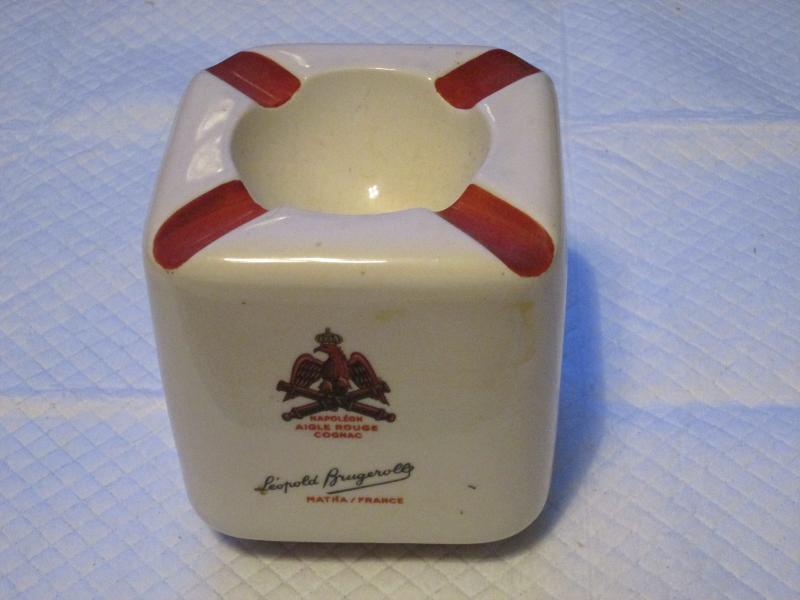 Napoleon Aigle Rouge Cognac square ceramic decanter and ashtray, is missing cork