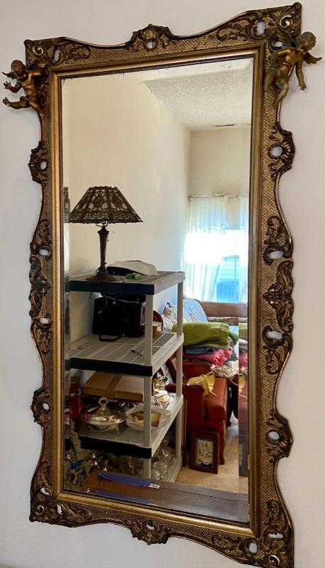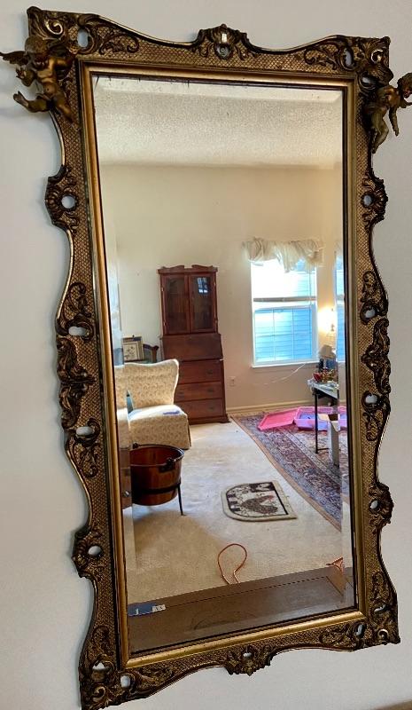 Lot 78: Vintage Large Ornate Cherub Gold tone Mirror