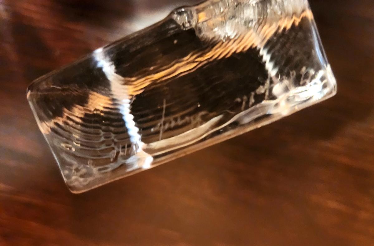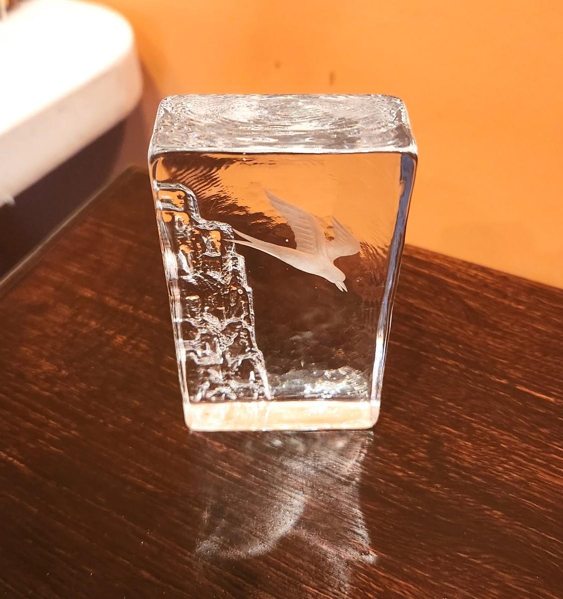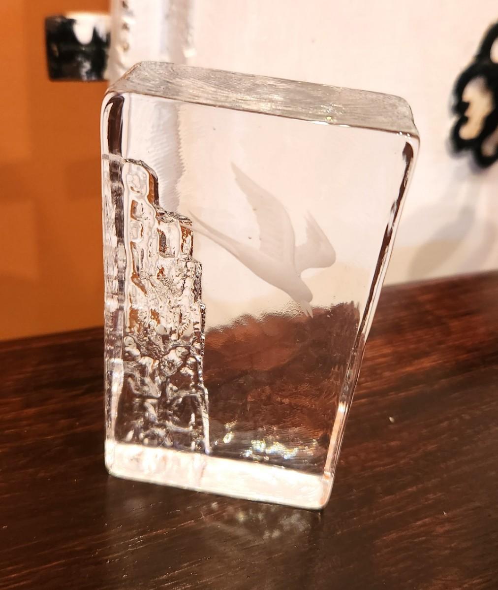 Edenfalk Skruf Crystal Ice Block design acid etched bird paperweight - Mid Century - signed SKRUF - good condition. Swedish glass.