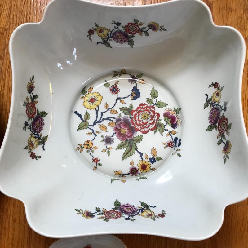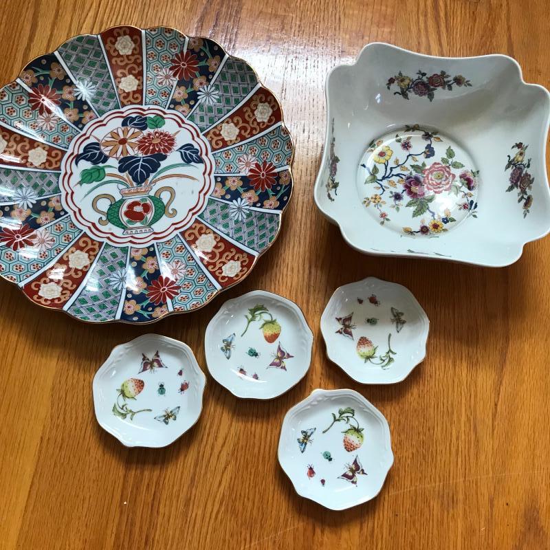 Lot includes six pieces of floral china. Platter is approx. 12” in diameter. Shipping available or local pickup in Asheville, NC.