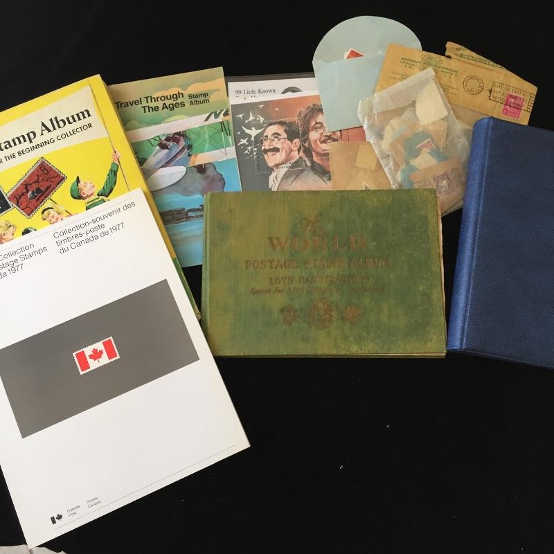 Selection of stamps foreign and domestic and stamp collection books.