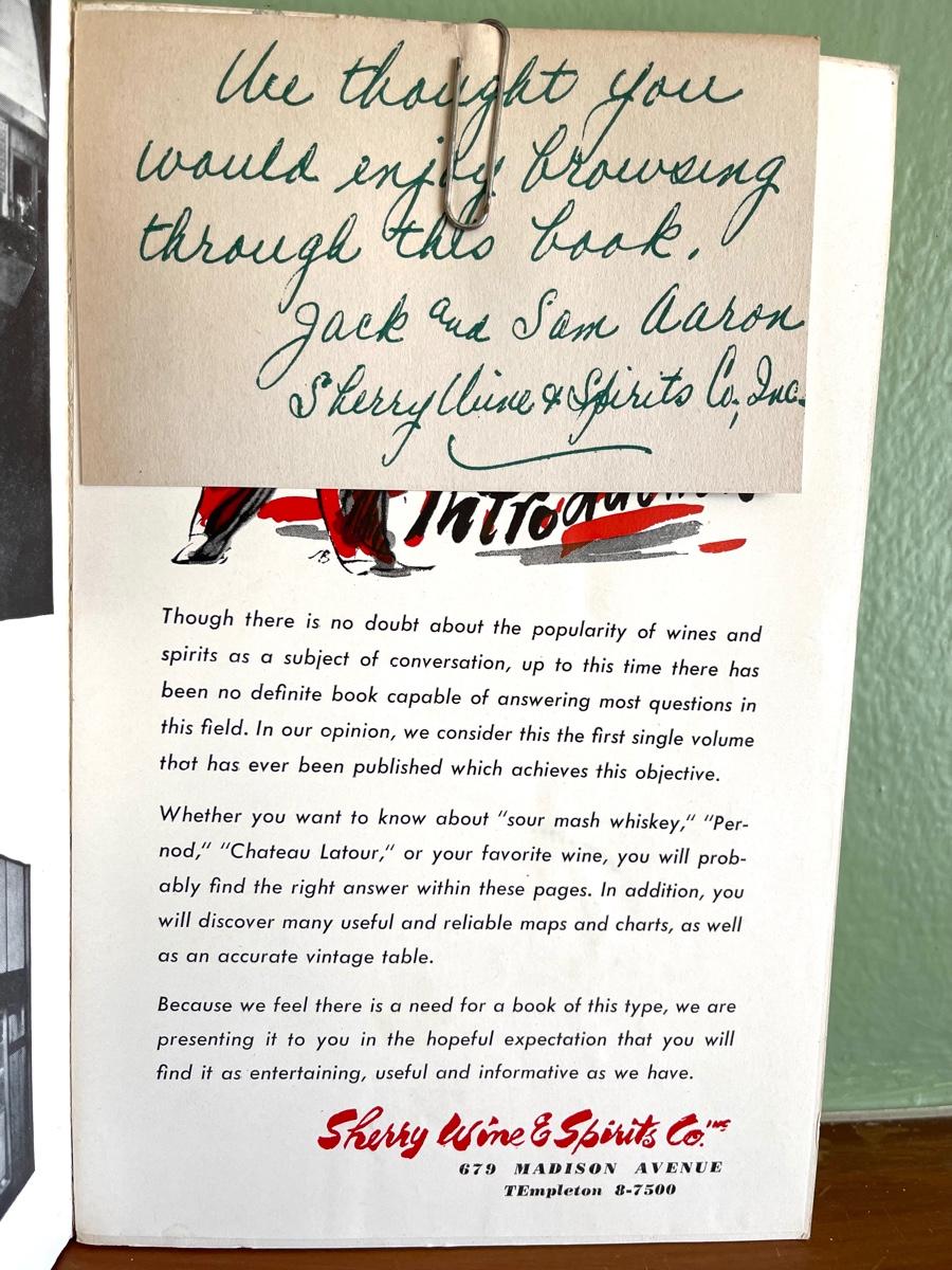 LOT 78 - Frank Schoonmaker's Dictionary of Wines - Note from Jack Aaron