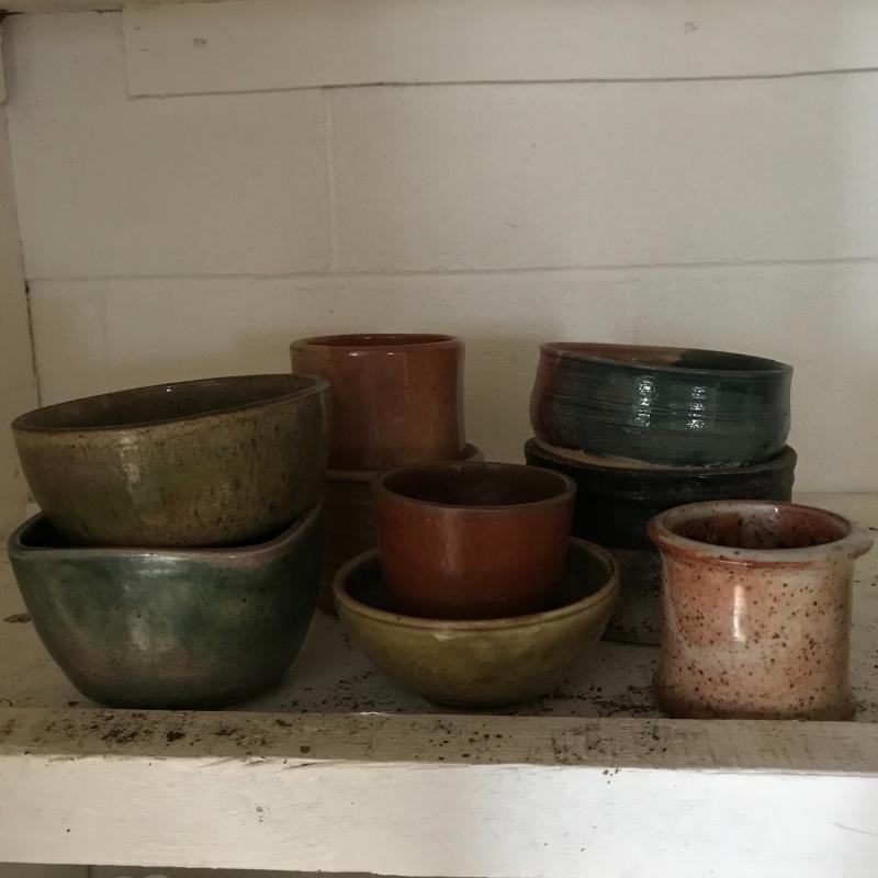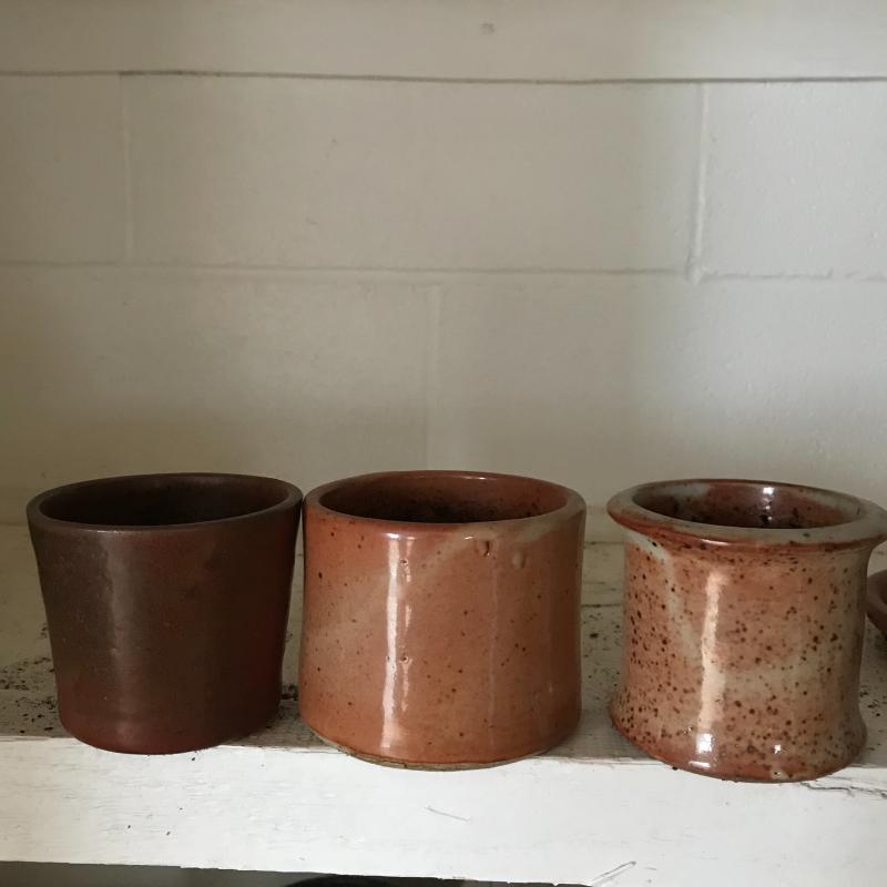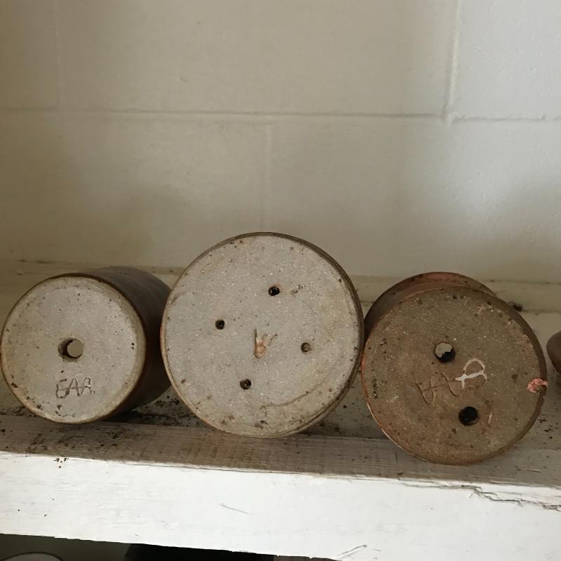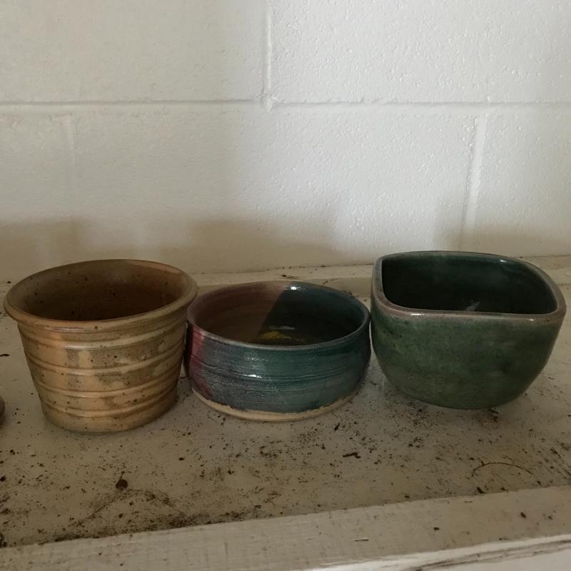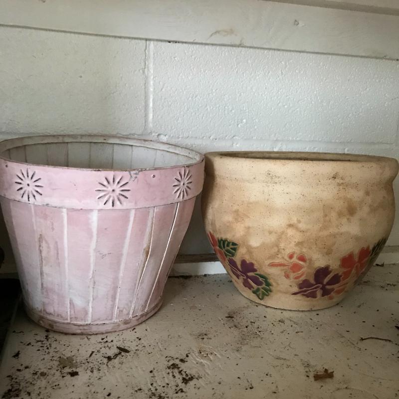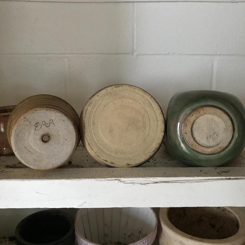 Large collection for your potting needs. Lot includes a large selection of small pottery previously used for plants. Other pots are various material including metal, clay, and plastic. The three large matching pots are a lightweight material and the tallest at 10.5” tall. Some small river rocks complete the set. See photos for all inventory. No shipping.