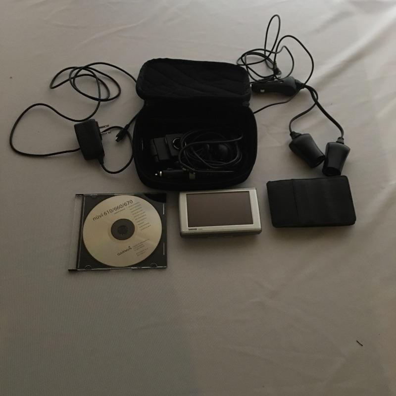 Garmin Nuvi 660 GPS. Lot includes Garmin Nuvi 660, car mount, home charger, leather case and dual 12v Plug. When your phone has no service this gps will help get you where you are going. GPS worked when tested.