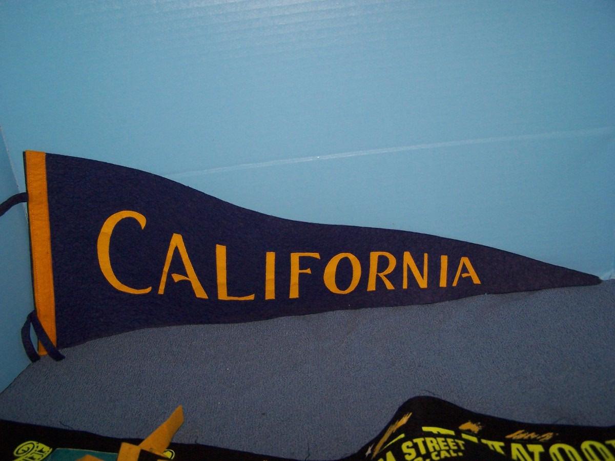 THESE ARE GREAT VINTAGE PENNANTS!!!CALIFORNIA-25'', WITH FRINGE... SOME WEAR/WRINKLES AND MISSING TIP...