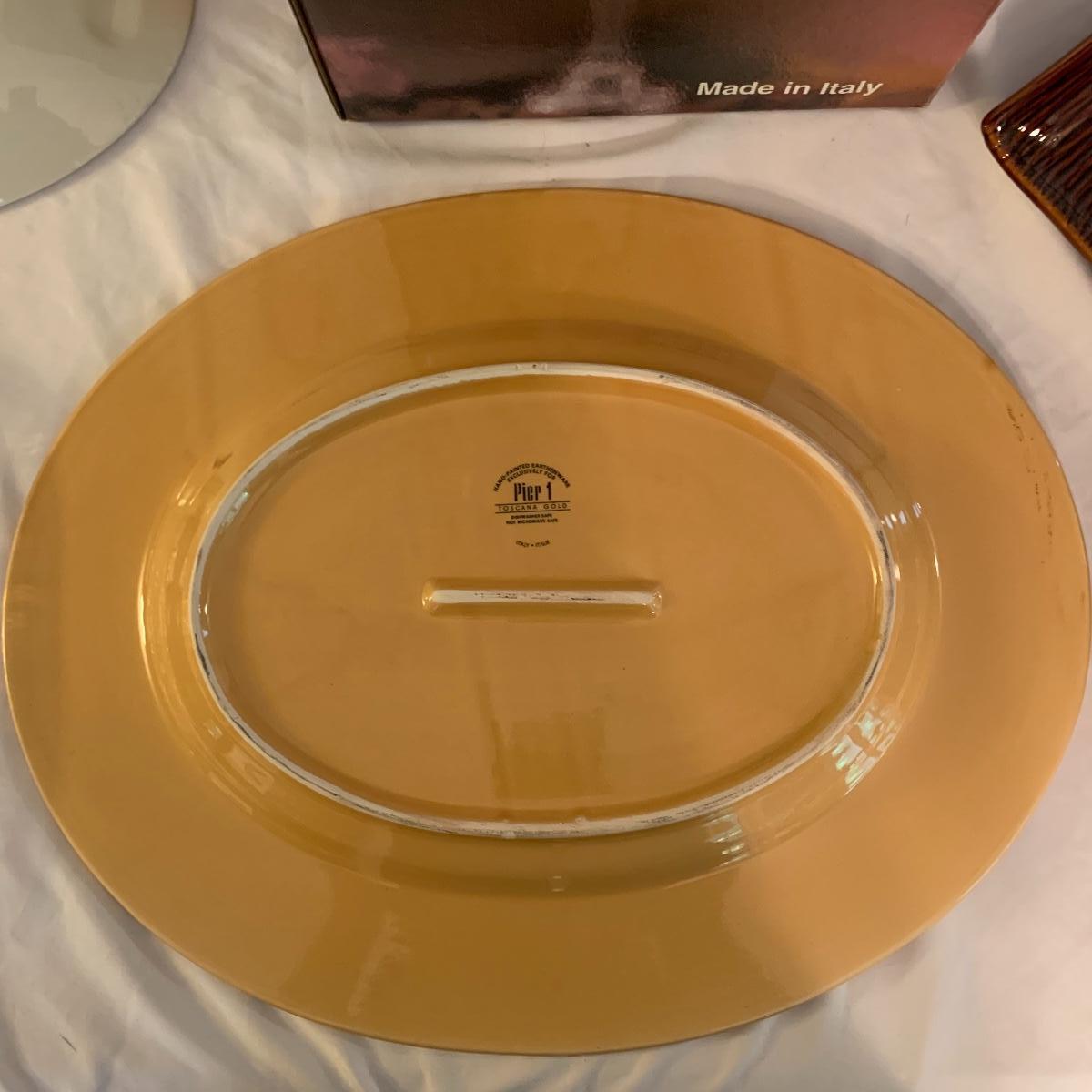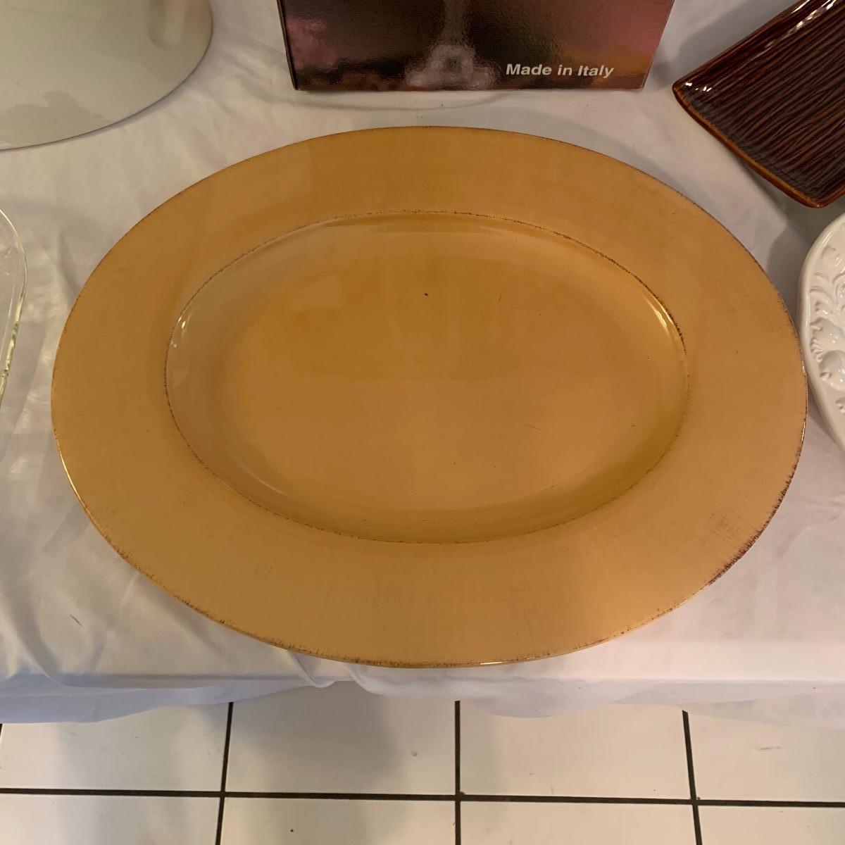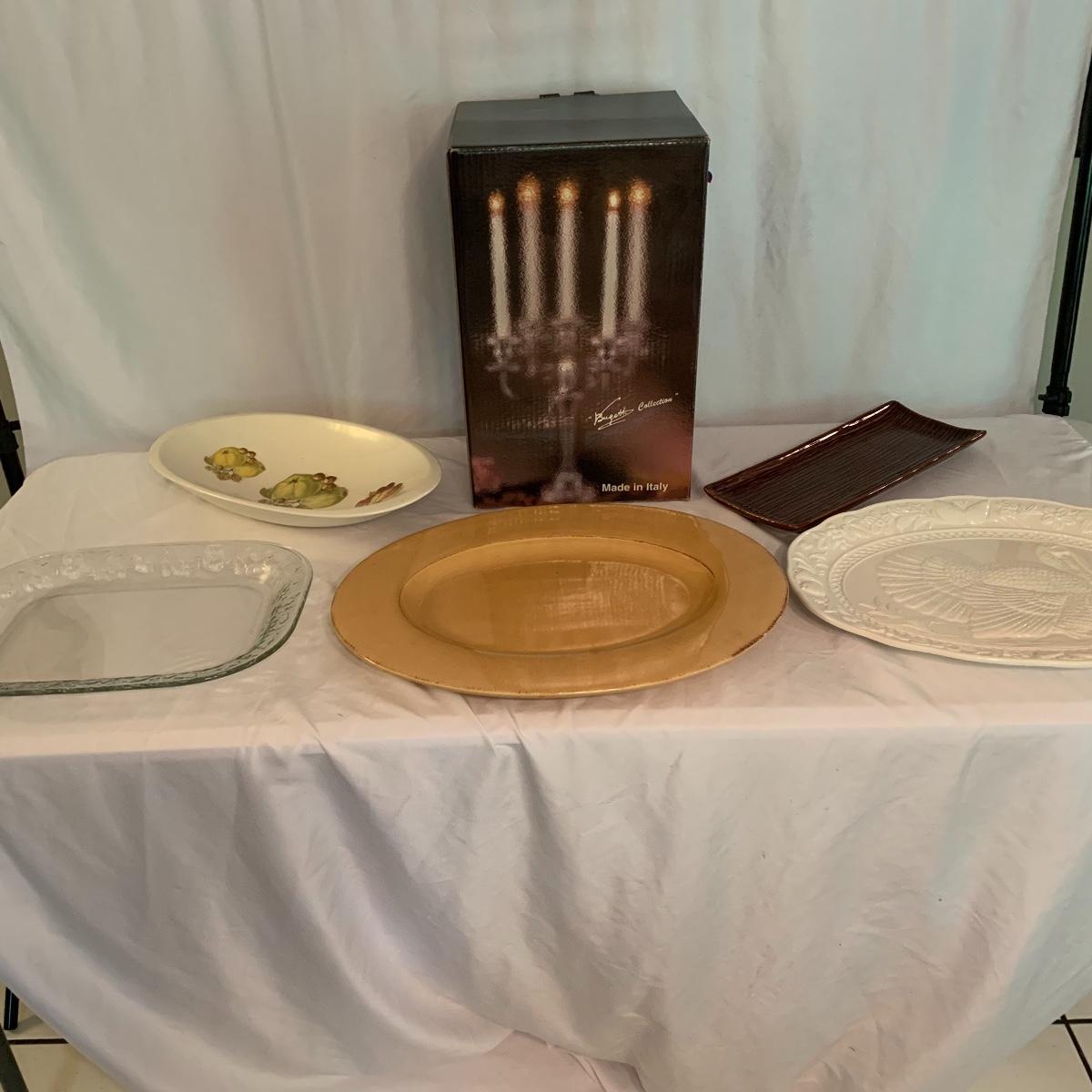 This Italian candelabra would make a beautiful center piece for your dining table. This piece can accommodate five candles and stands 15” tall. It comes in a box. Also offered are these five assorted serving plates of different sizes and shapes. Local pickup only.