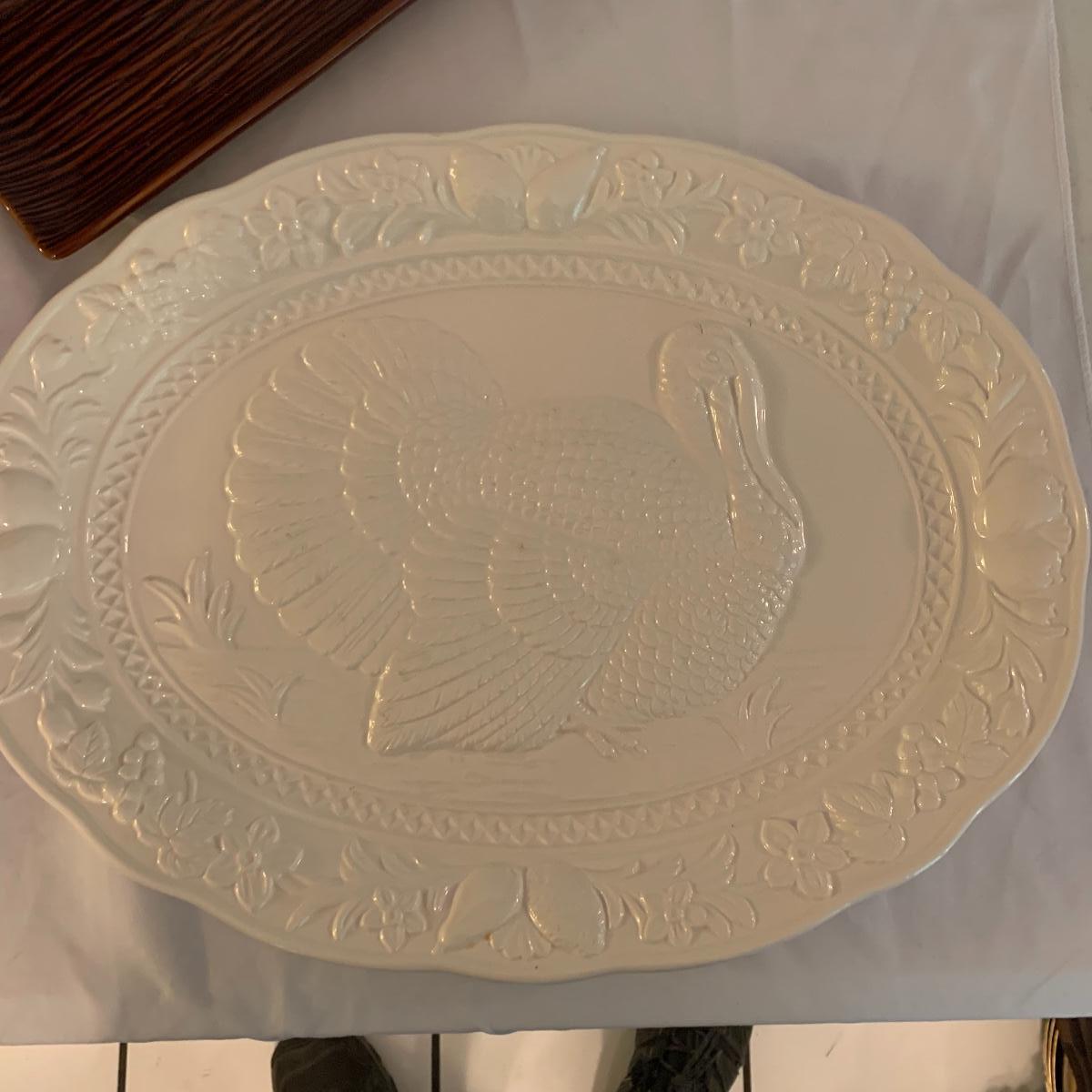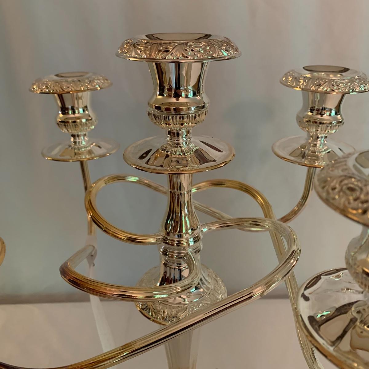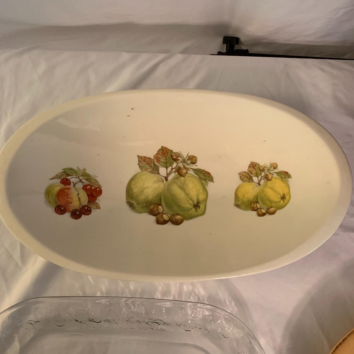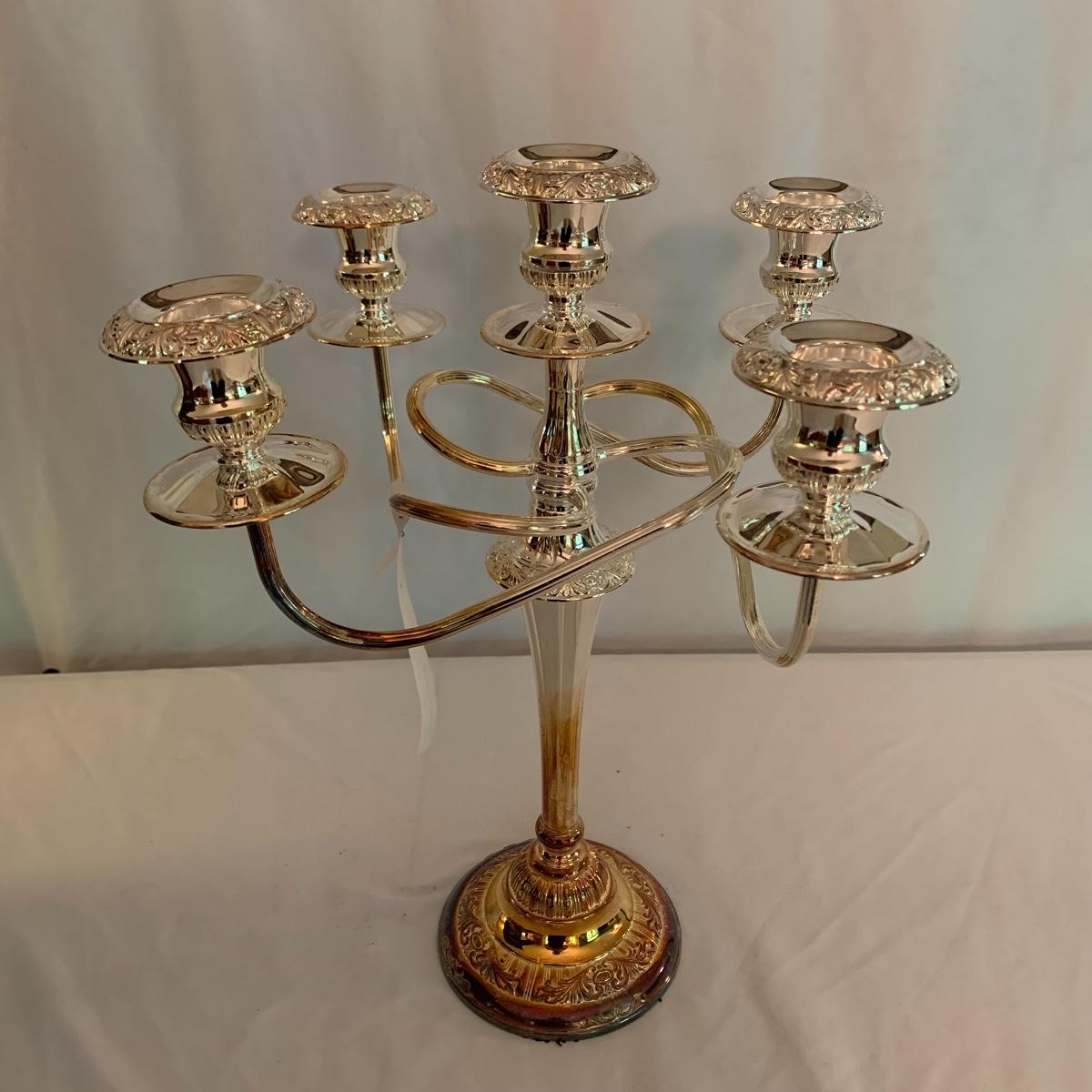 This Italian candelabra would make a beautiful center piece for your dining table. This piece can accommodate five candles and stands 15” tall. It comes in a box. Also offered are these five assorted serving plates of different sizes and shapes. Local pickup only.
