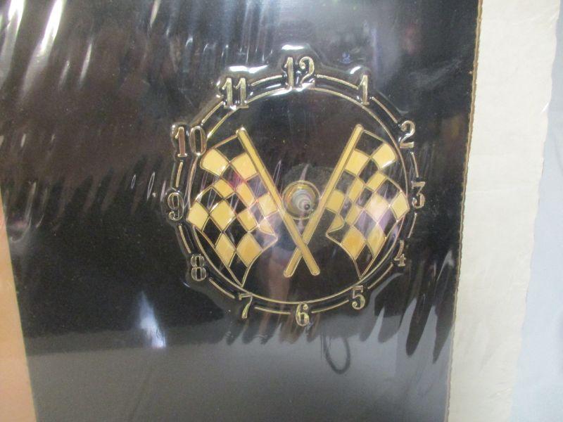 This package has never been opened, yet I don't see the clock hands. It may be that the clock hands are behind the the piece so that they didn't get accidentally bent, but I don't know for sure. It just seems odd that they are missing becase the shrink wrap is in unopened condition. The package measures 19.25" x 12.5". I do have a box that will fit this if you need it shipped, but it will have to go FedEx as USPS will be extra expensive due to the size of the box.