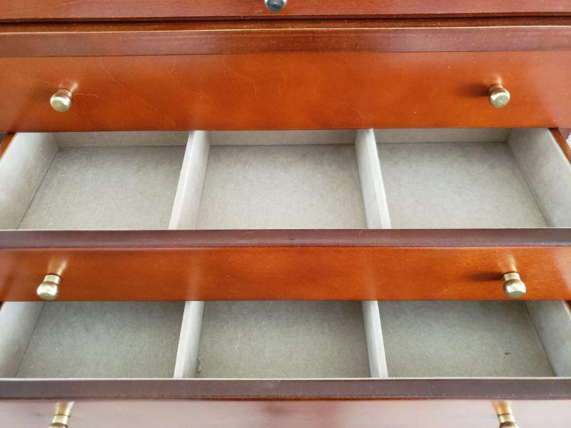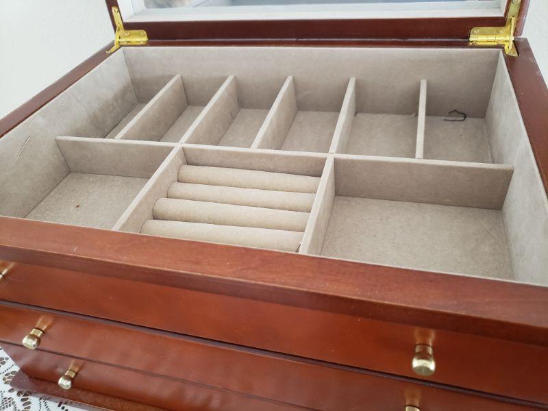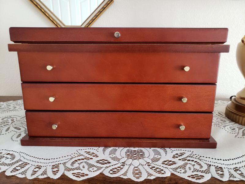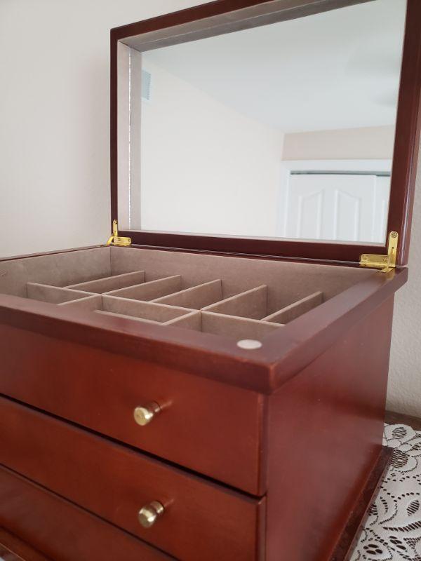 Nice Jewelry Box measuring 14.25" × 10" × 8.5". *** Most Importantly, have you read the terms and conditions section of this auction? Please do so BEFORE bidding because failure to review the contract does not grant you immunity from them. Please do not be upset with our company if your fail to understand the terms/conditions that you agree to by placing a bid as we are unable to offer exceptions regardless of the situation. If you bid, you agree to the terms and conditions (including most importantly the pickup dates/times). Any buyer inquiries attempting to collect their items either earlier or later than the specified times will be simply sent a screenshot of the publicly advertised period for collection that they agreed to by placing a bid. No exceptions will be made, for any buyer, for any reason, even family emergencies or acts of God, in regards to pickup dates/times. ALSO, if you win a single auction or multiple, please wait until the entire auction is complete (not just your item) for the invoices to be sent. We urge ALL buyers to check their EstateSales.org Message Box, not your personal email like Gmail or Yahoo, for that invoice. Failure to review your EstateSales.org inbox for the Invoice (which will contain the hidden address and confirmation of pickup dates/times) is not an excuse for missing the pickup dates and times as they are public since the start of any auction. If for some reason you are unable to access your invoice with the address, it is your responsibility to contact Ms. Museum Estate Sales PRIOR to the pickup day to confirm the location. Any buyer who fails to collect their item during the specified dates/times will NOT receive their money back, the item(s) or any other form of compensation due to the terms that you agree to when bidding. Best of Luck!