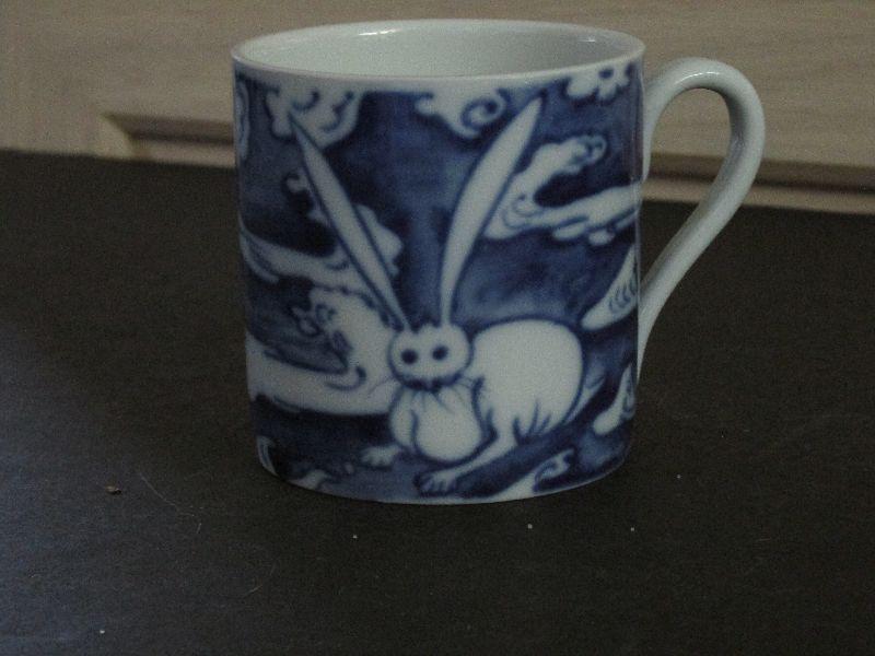 Mottahedah Porcelain Blue Rabbit cup. No chips, cracks, or crazing.