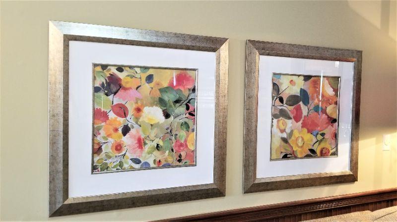 Attractive pair of decorator framed prints. They measures 33.5 x 33.5". Good condition.