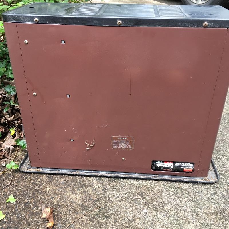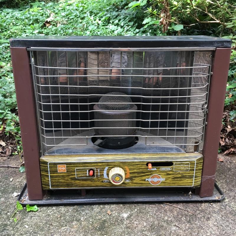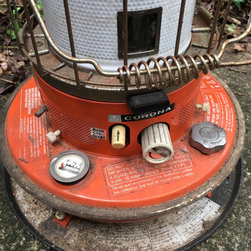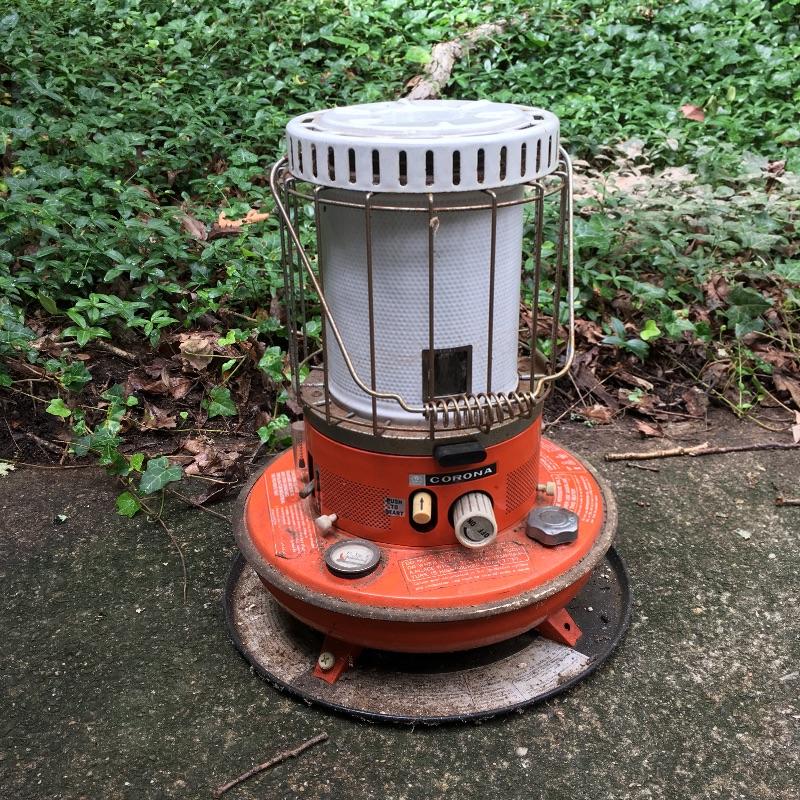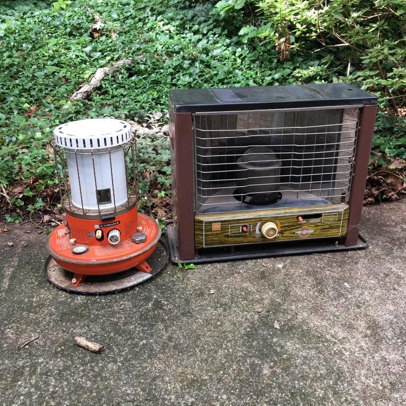 Pair of portable kerosene heaters include one Fujika and one by Corona. Heaters were not tested for working condition. Largest heater measures 11” x 25” x 19”.