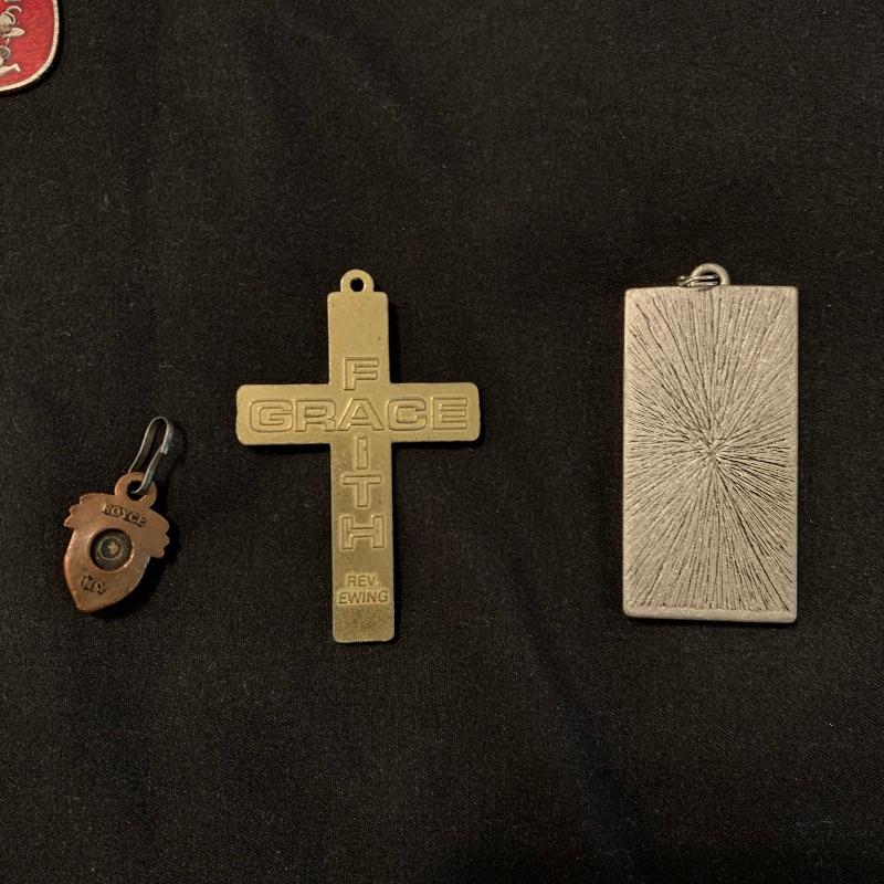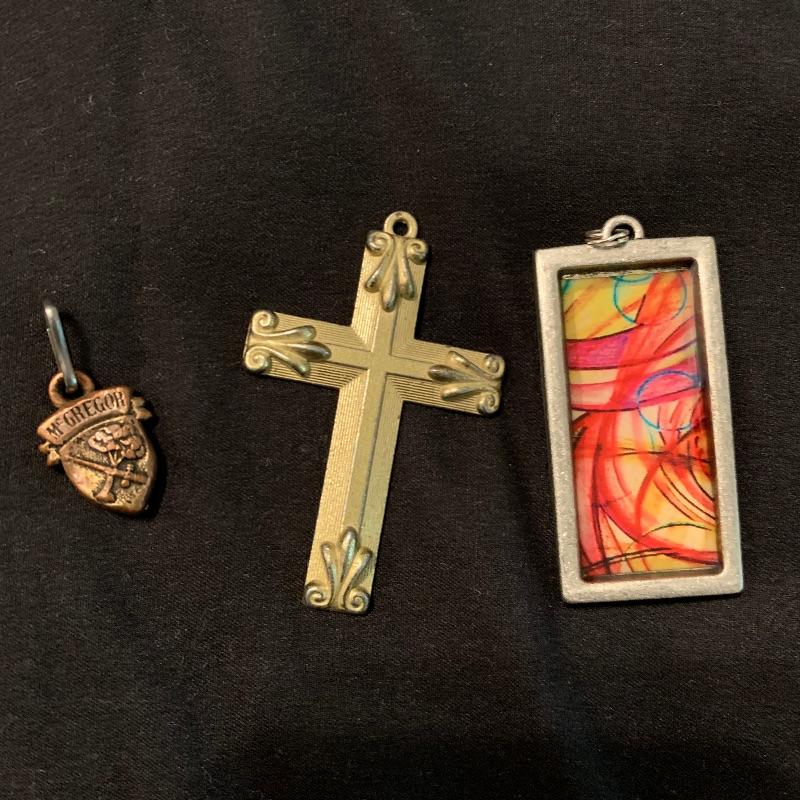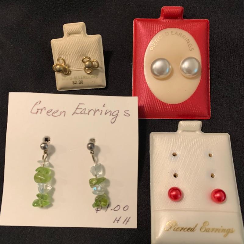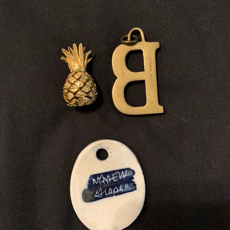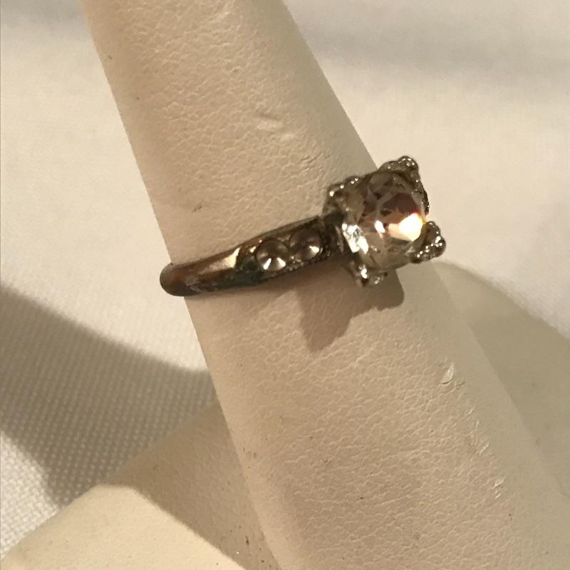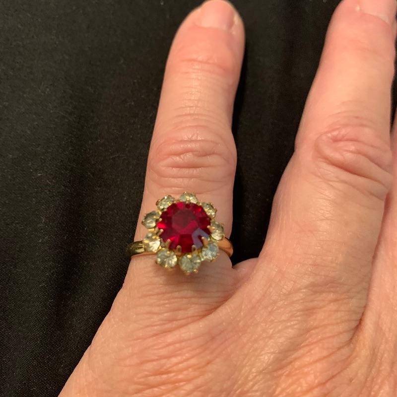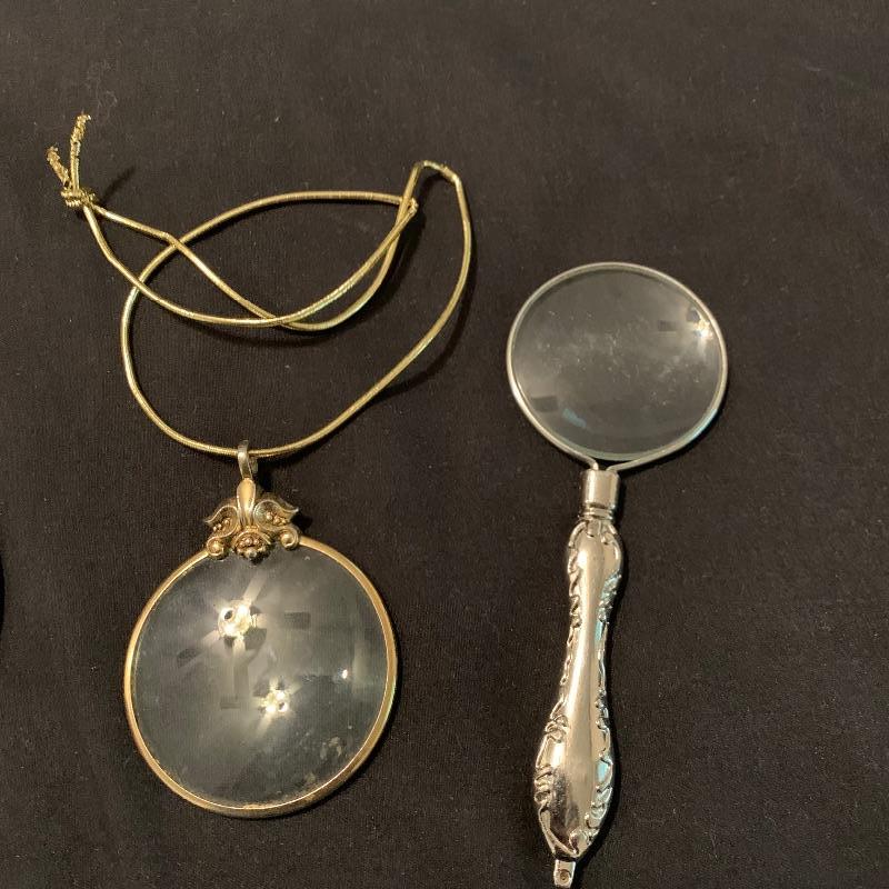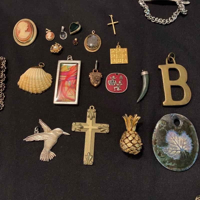 This lot has a large selection of pins from holiday style and every day flare pins including six stick pins and one well done rose needle point pin/pendant combo. There are several pendants in this lot from delicate cross to chunky brass B and pineapple. A lovely cameo pin pendant combo is a nice vintage feature as well as seven rings mostly between sizes 7 & 8, to include two mood rings one faux engagement set and a iridescent shell like ring. The ring with the faux ruby centerpiece has an adjustable band. Four pairs of stud earrings and few bracelets, scarf accessories and two cases finish out this bountiful lot of goodies. Shipping available.