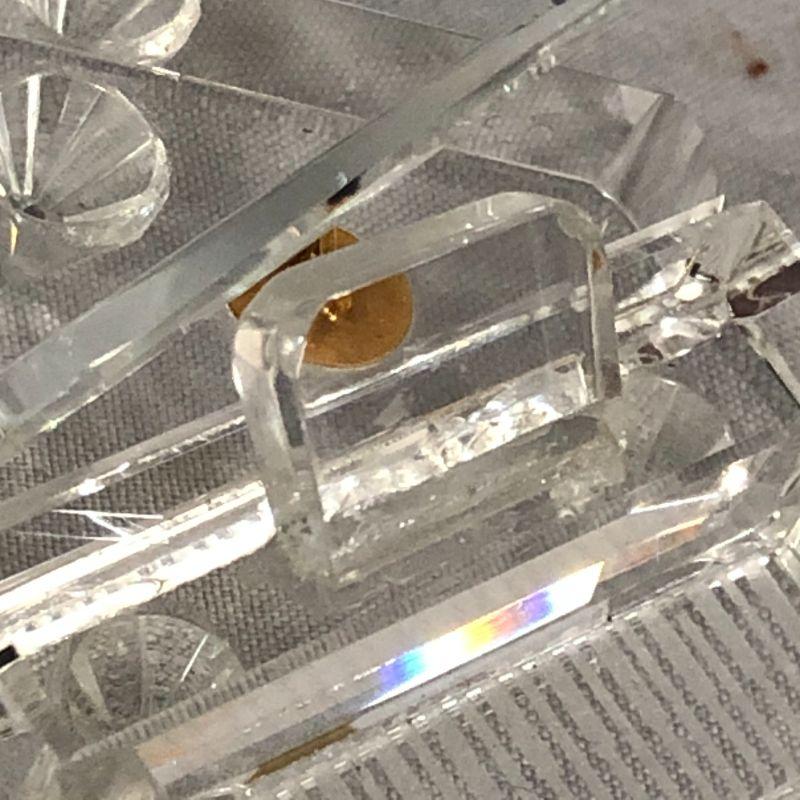 The only issue with this is that I did have to glue the music holding stand part back on, otherwise, it's in great condition. It is about 2" tall and about 2" long. It looks like it can hang like a prism as it has a hook in the center.