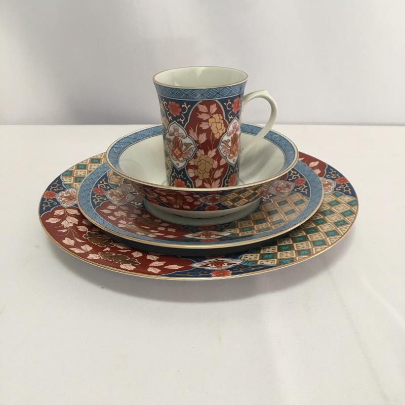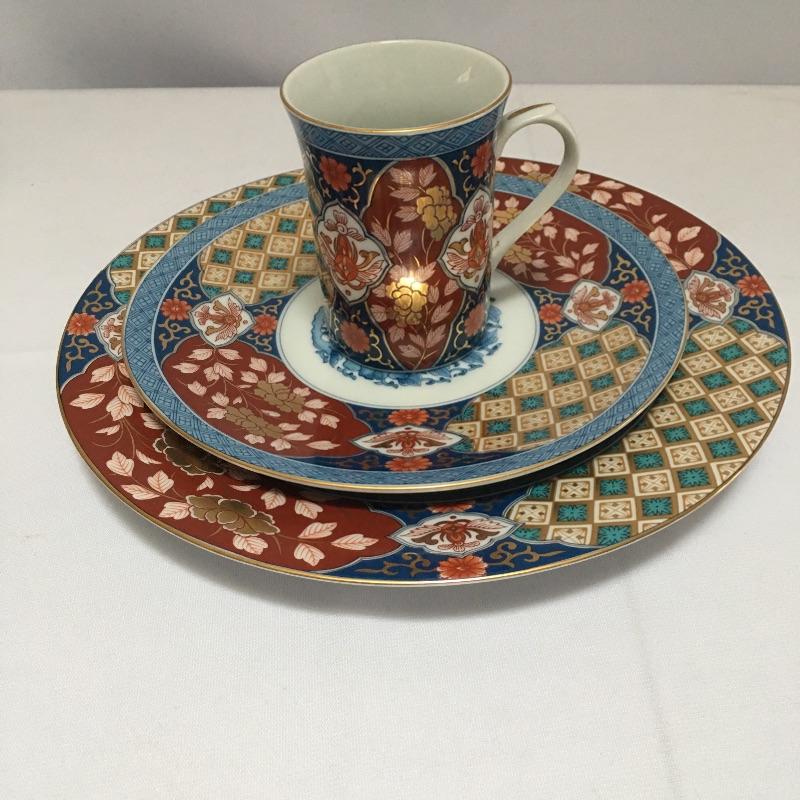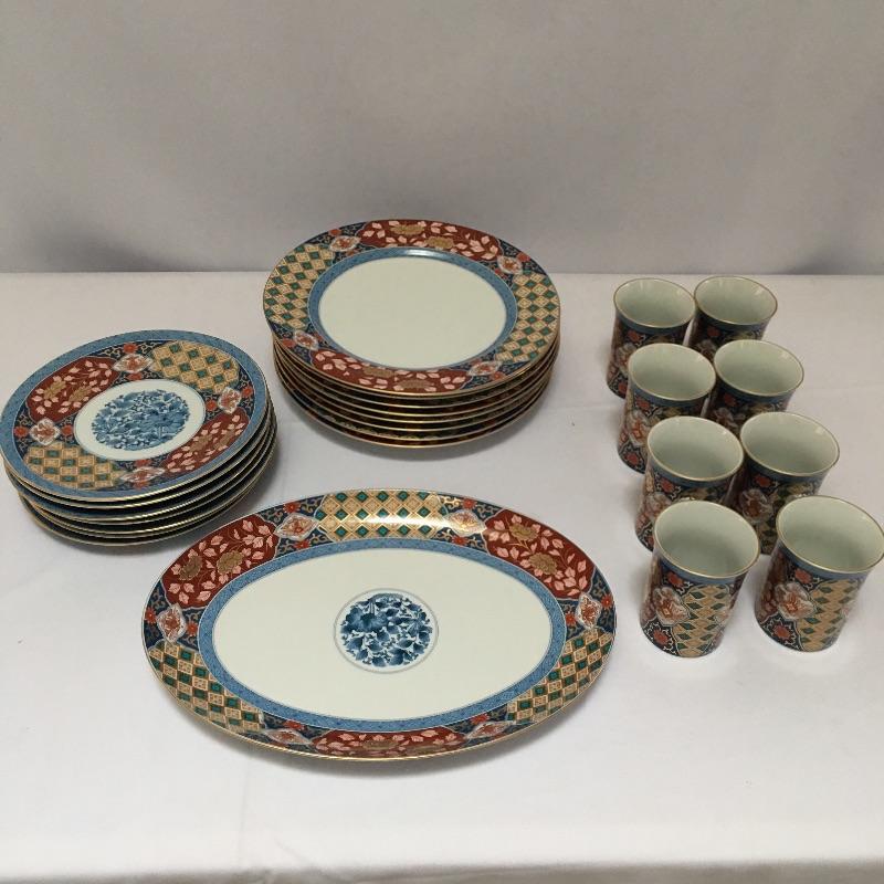 Smithsonian Museum Japanese Imari Pattern China includes 8 cups, eight dinner plates, eight bowls, seven salad plates and a serving platter. A stunning set of China. Pictures don’t do this set justice. Dinner plate measures 11”D.