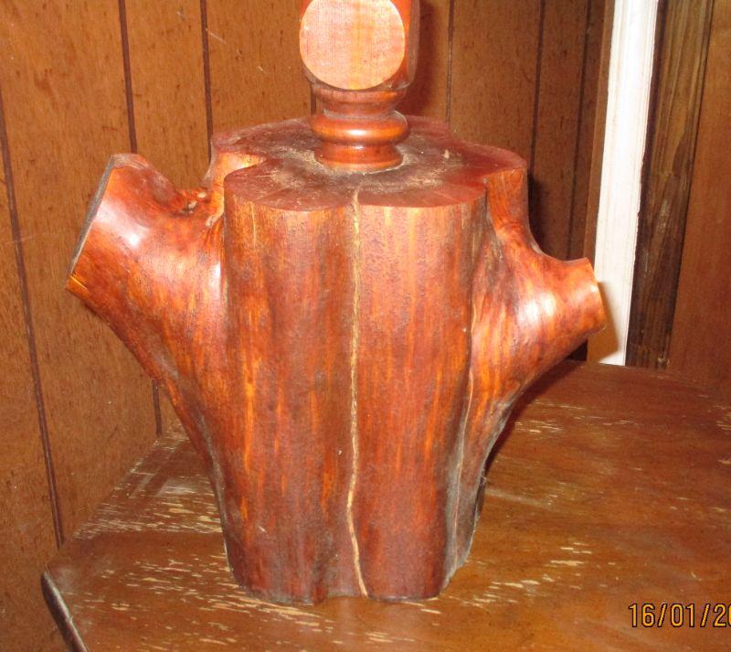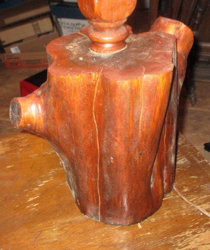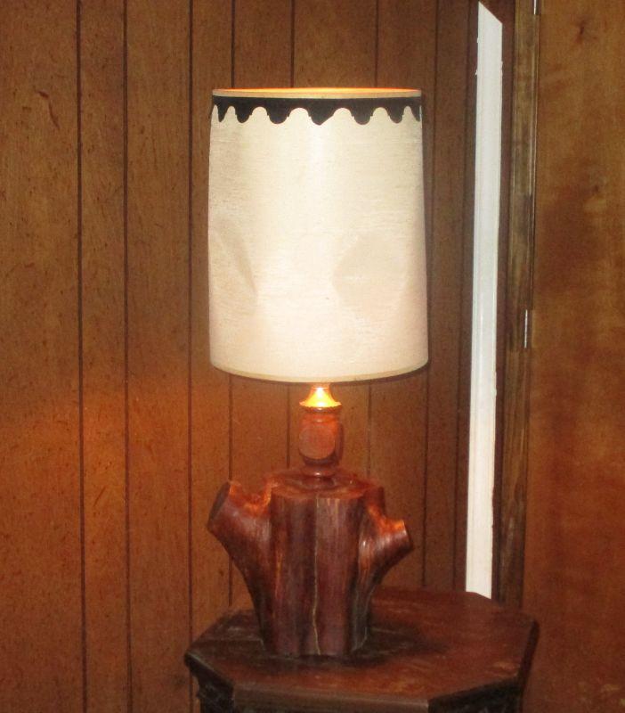 This lamp is made from a piece of real wood (maybe cedar?) The wood piece is 10.5" tall and the lamp does work.