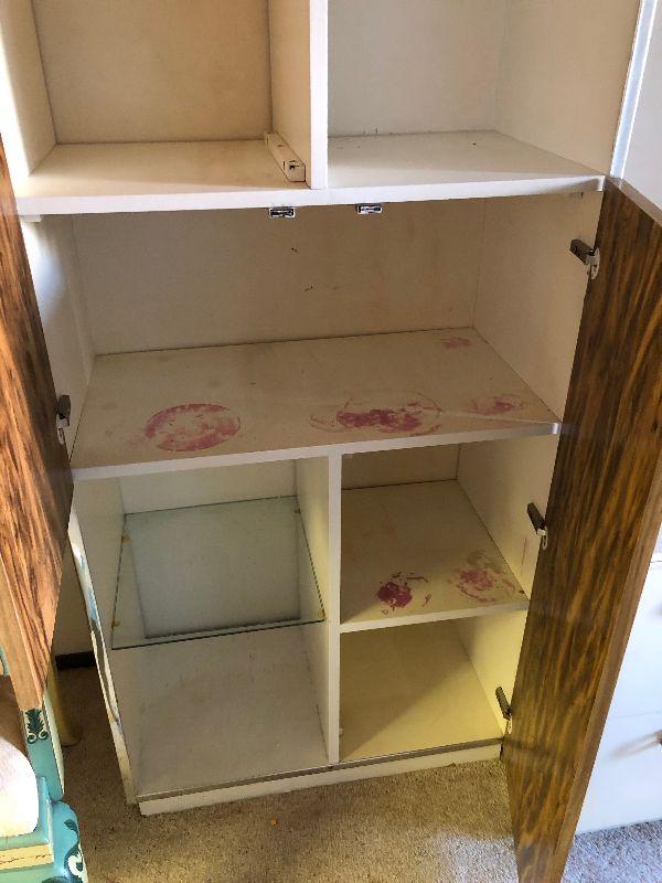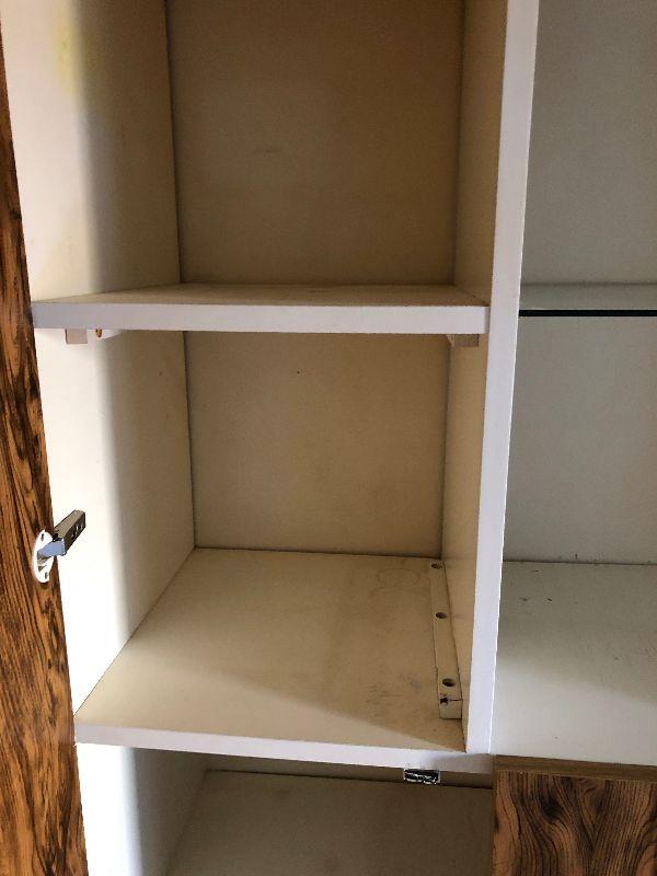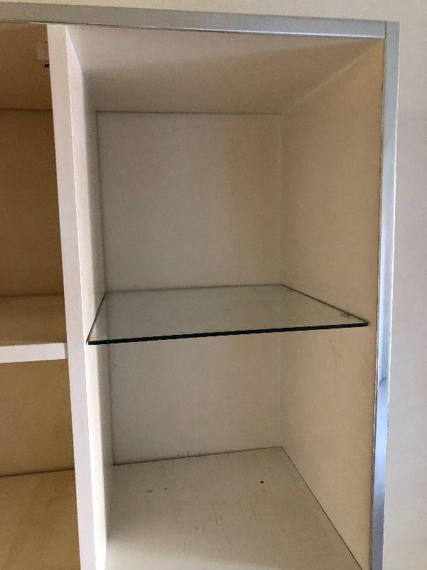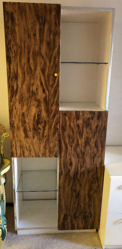 Lot #78 Tall Melamine Cupboard with doors and Glass shelf