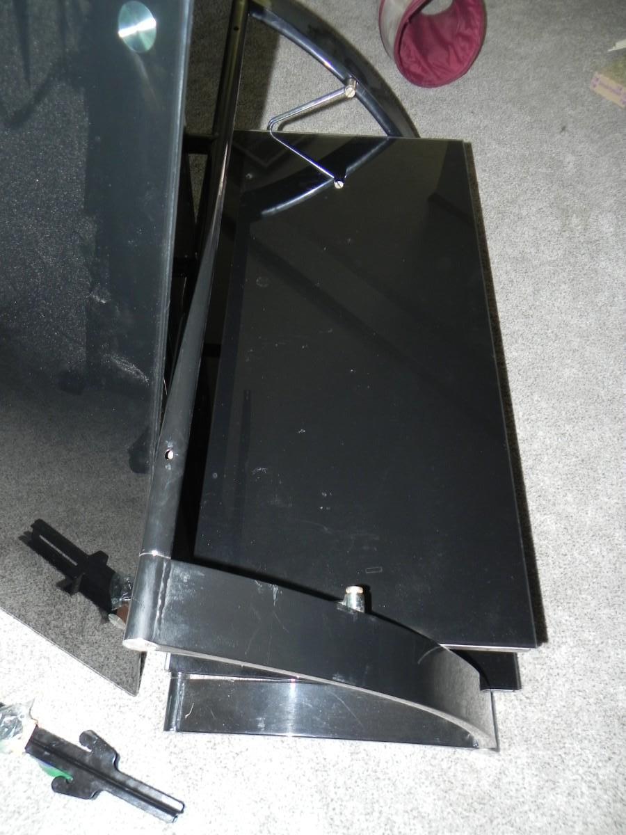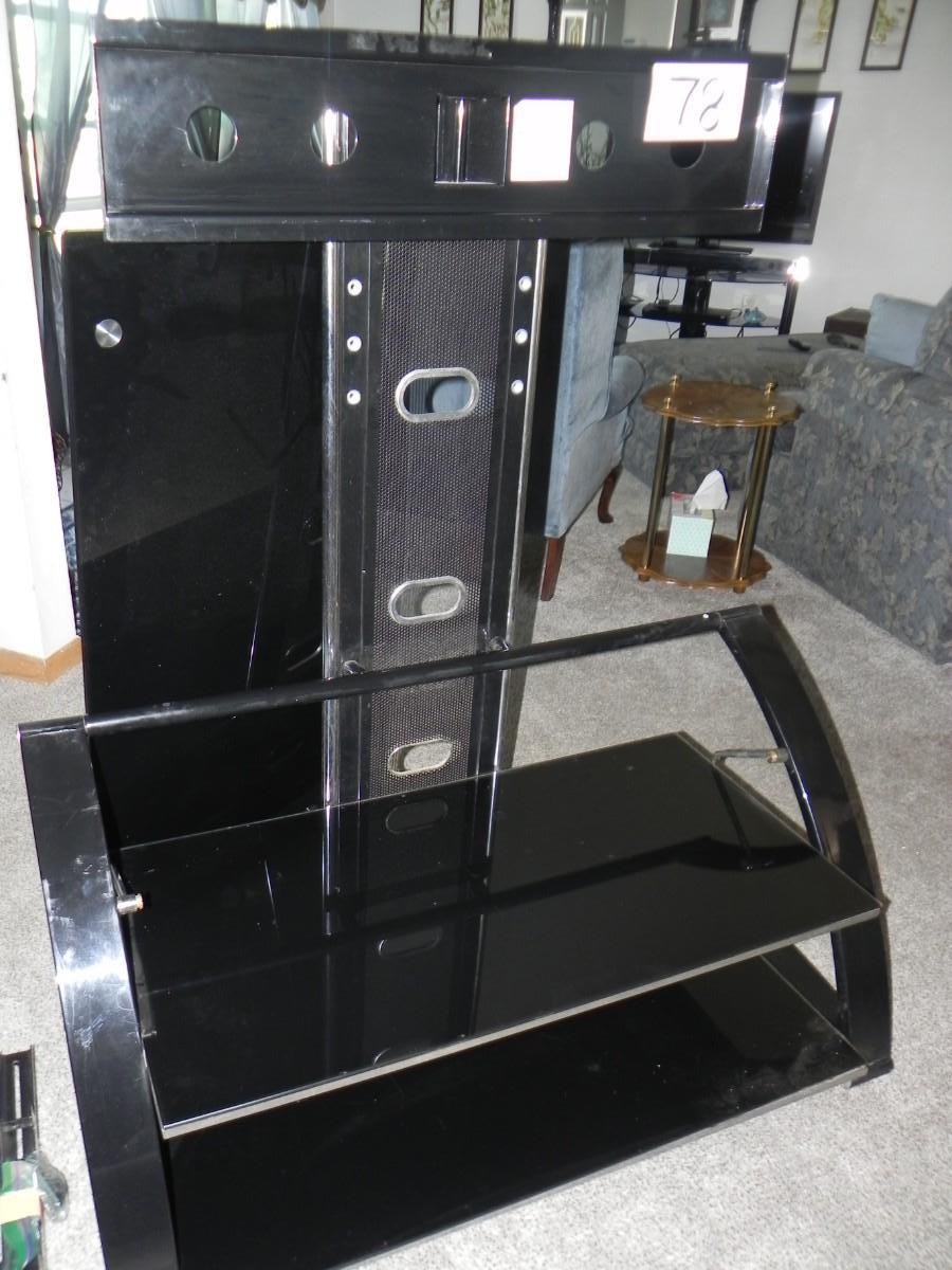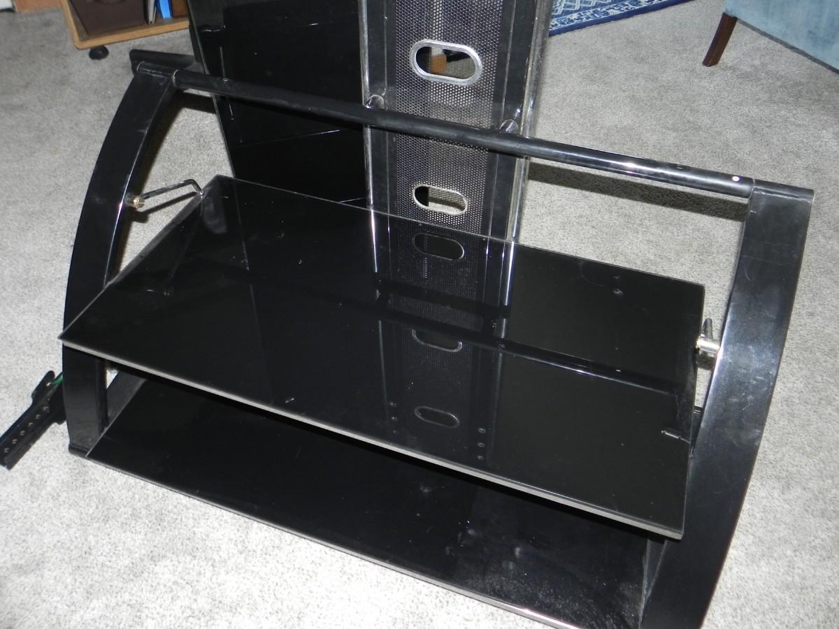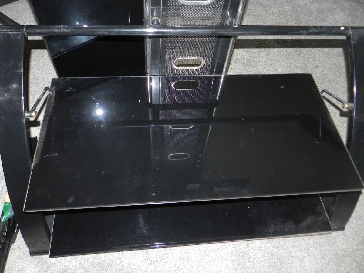 THREE TEIRED MEDIA STAND GLASS SHELVING 43X25X58 WILL HOLD THE LARGER FLATSCREENS VERY SOLID