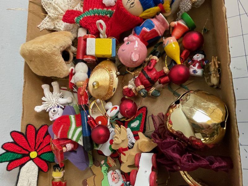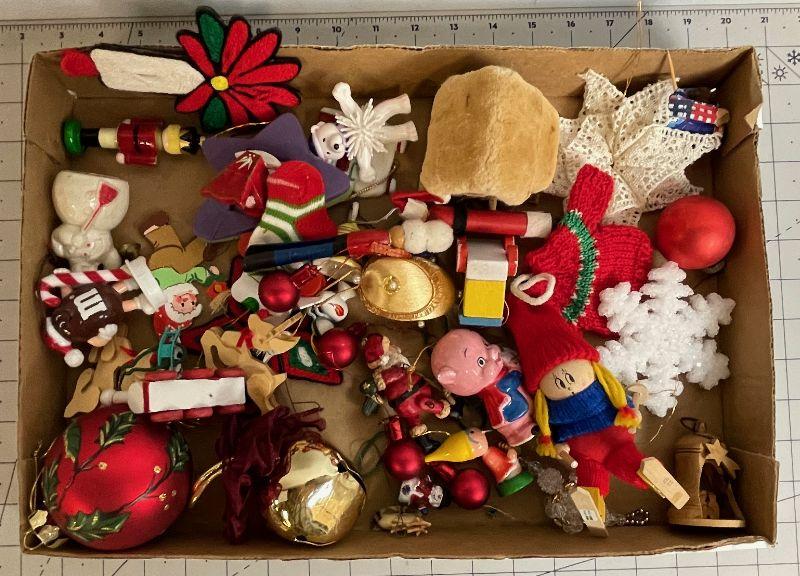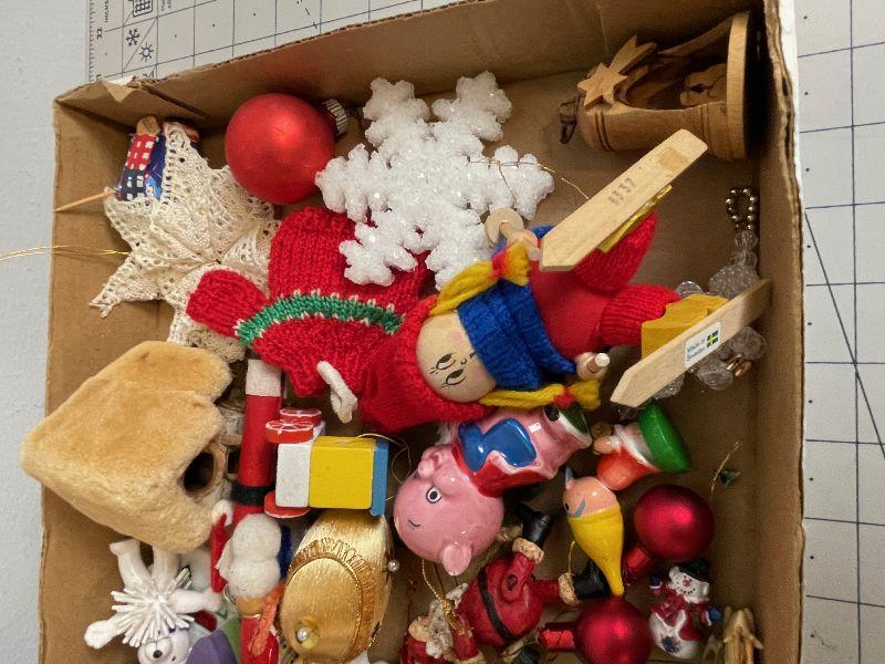 Lot #78 Tray 1 of Christmas Trinkets Skier, carpet house