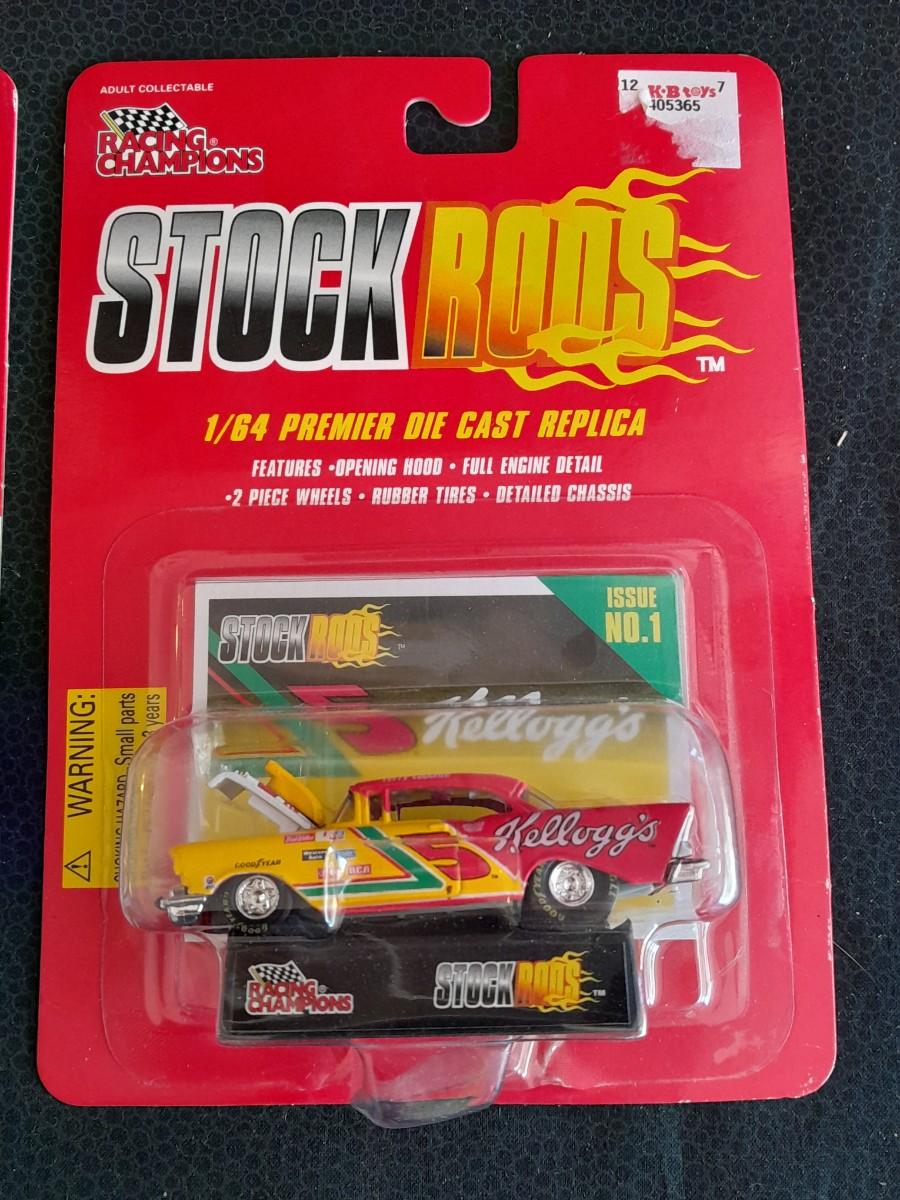 TWO NEW PACKAGES OF CARS, 1995 EDITION KELLOG'S CAR AND KELLOG'S STOCK RODS CAR