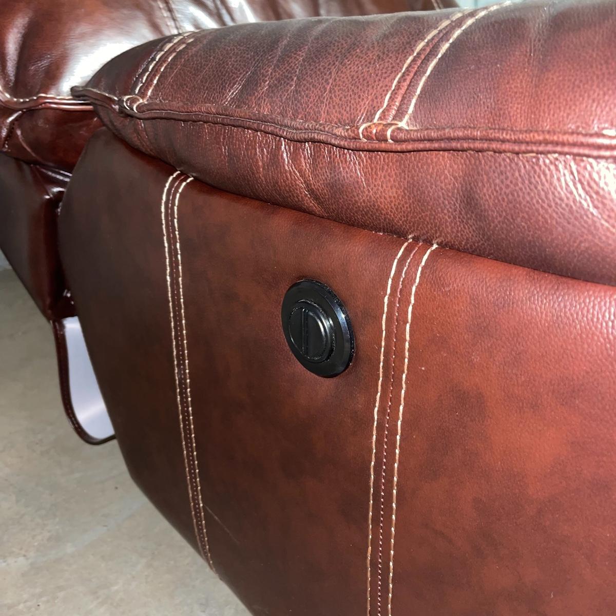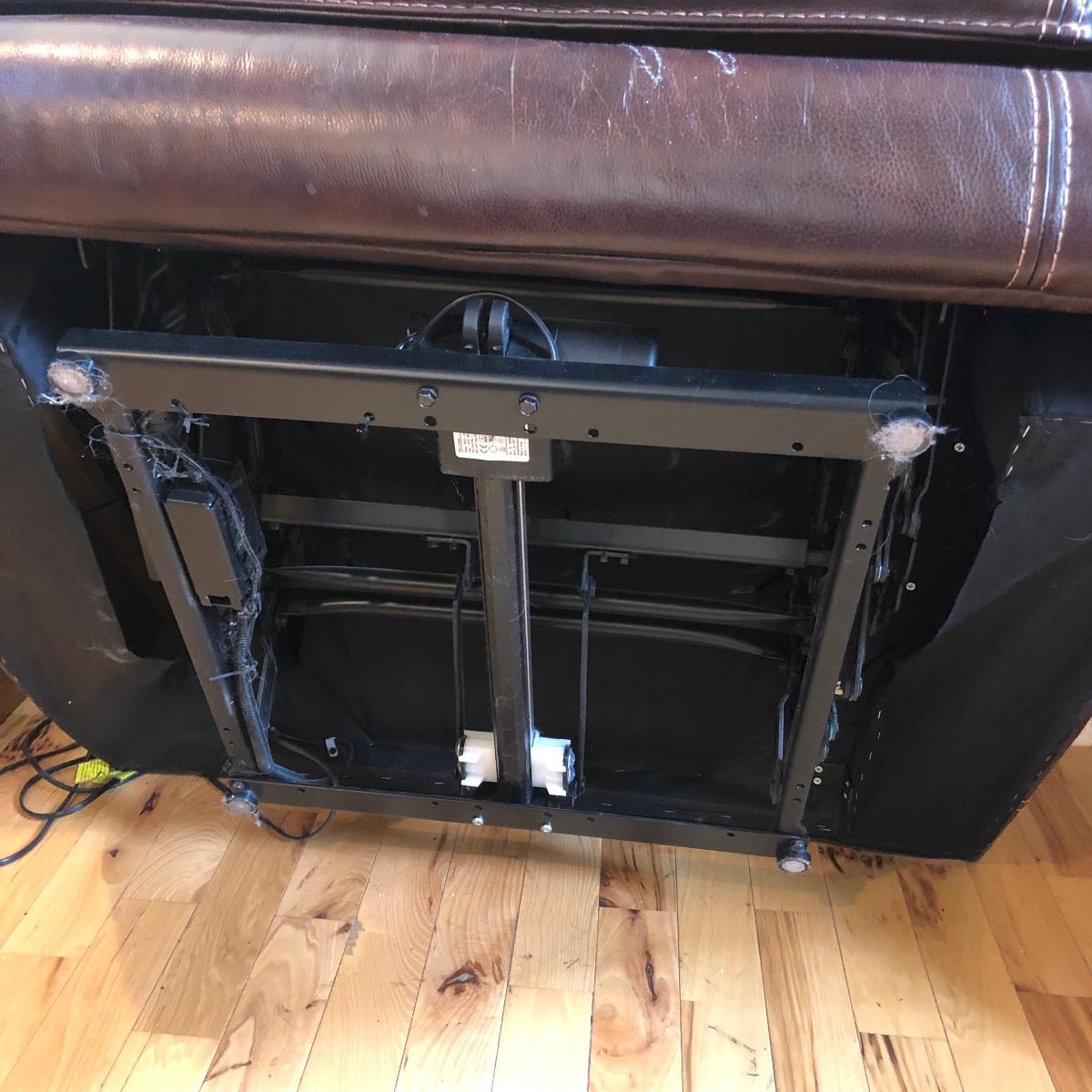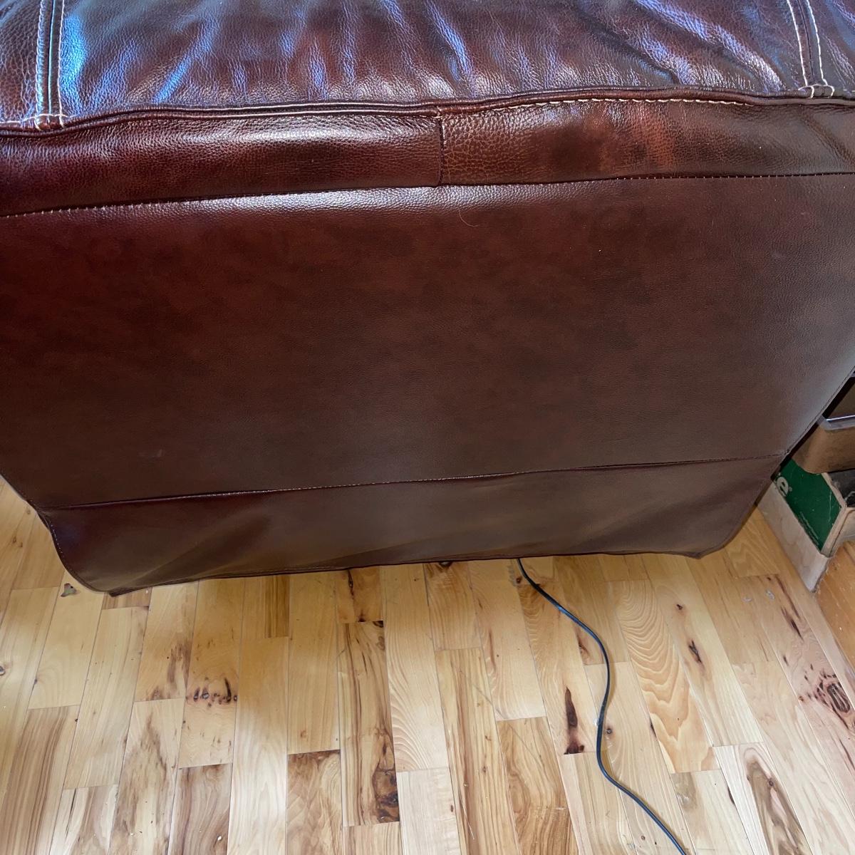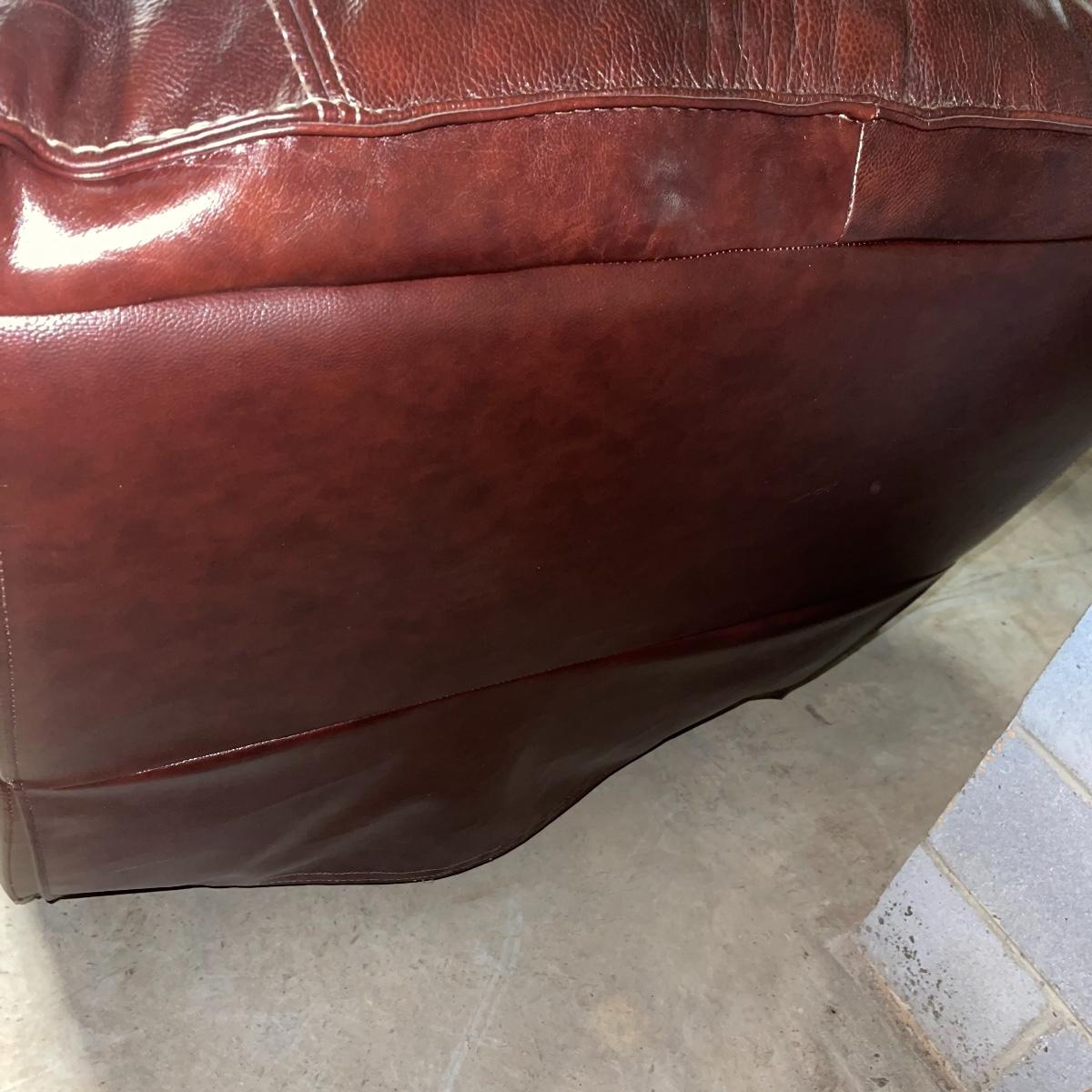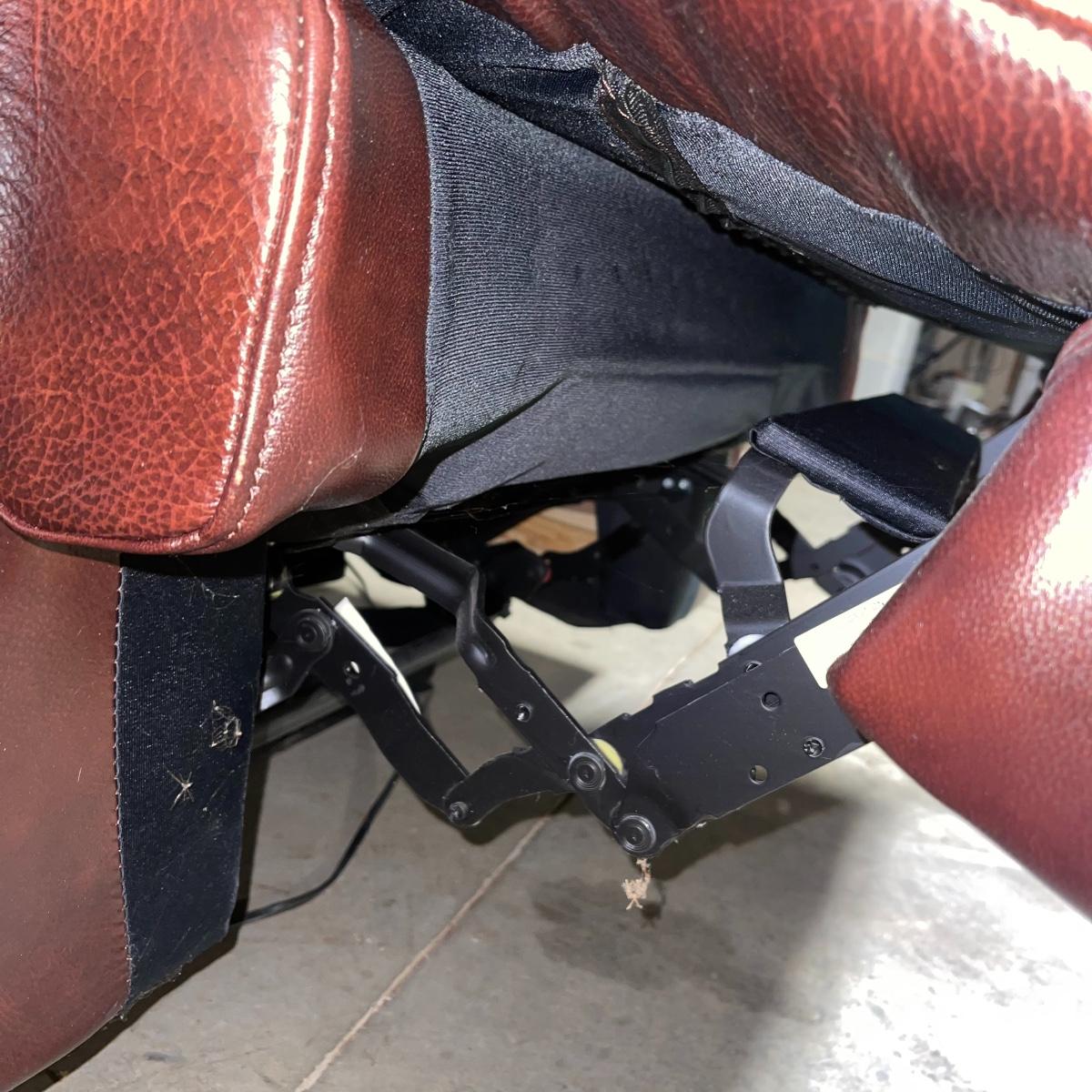 These comfy leather-like recliners are the perfect addition to any living space. At 45” x 43” x 40” when in upright position, these chairs are size able and are ideal for relaxing, reading, or anything in between. When reclined fully, they are just under 70” from the top of the headrest to the base of the foot rest. They are not too heavy, just bulky. The soft leather-like upholstery is easy to clean and has a very mild texture. Grab a book or a good show and start reclining!