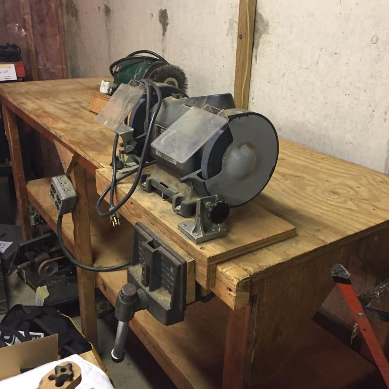 Wooden Workbench with Vise,Grinder and Wire Wheel