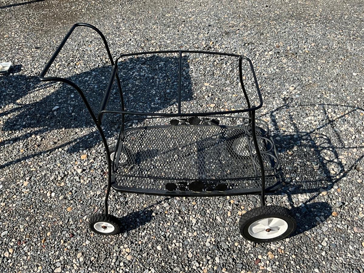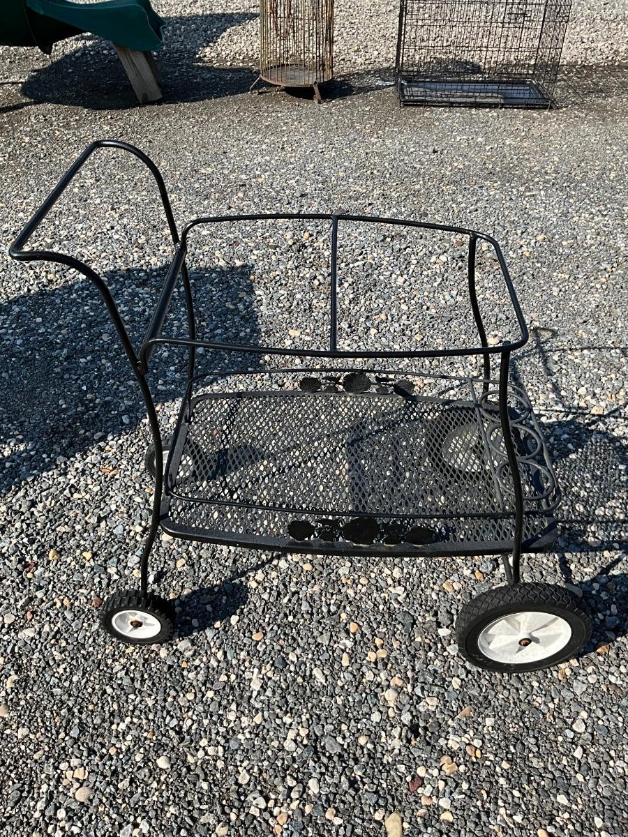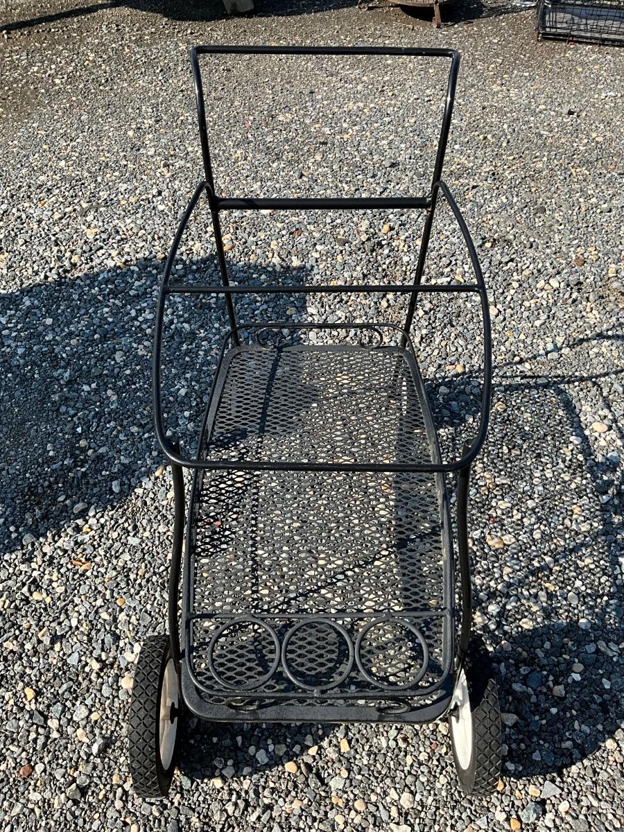 Wrought Iron Garden Cart, measures 22.5” Wide x 34.5” Deep x 35.5” High