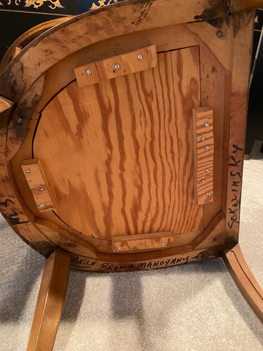 Chairs have been repaired however they are sturdy and will need new seat cushions