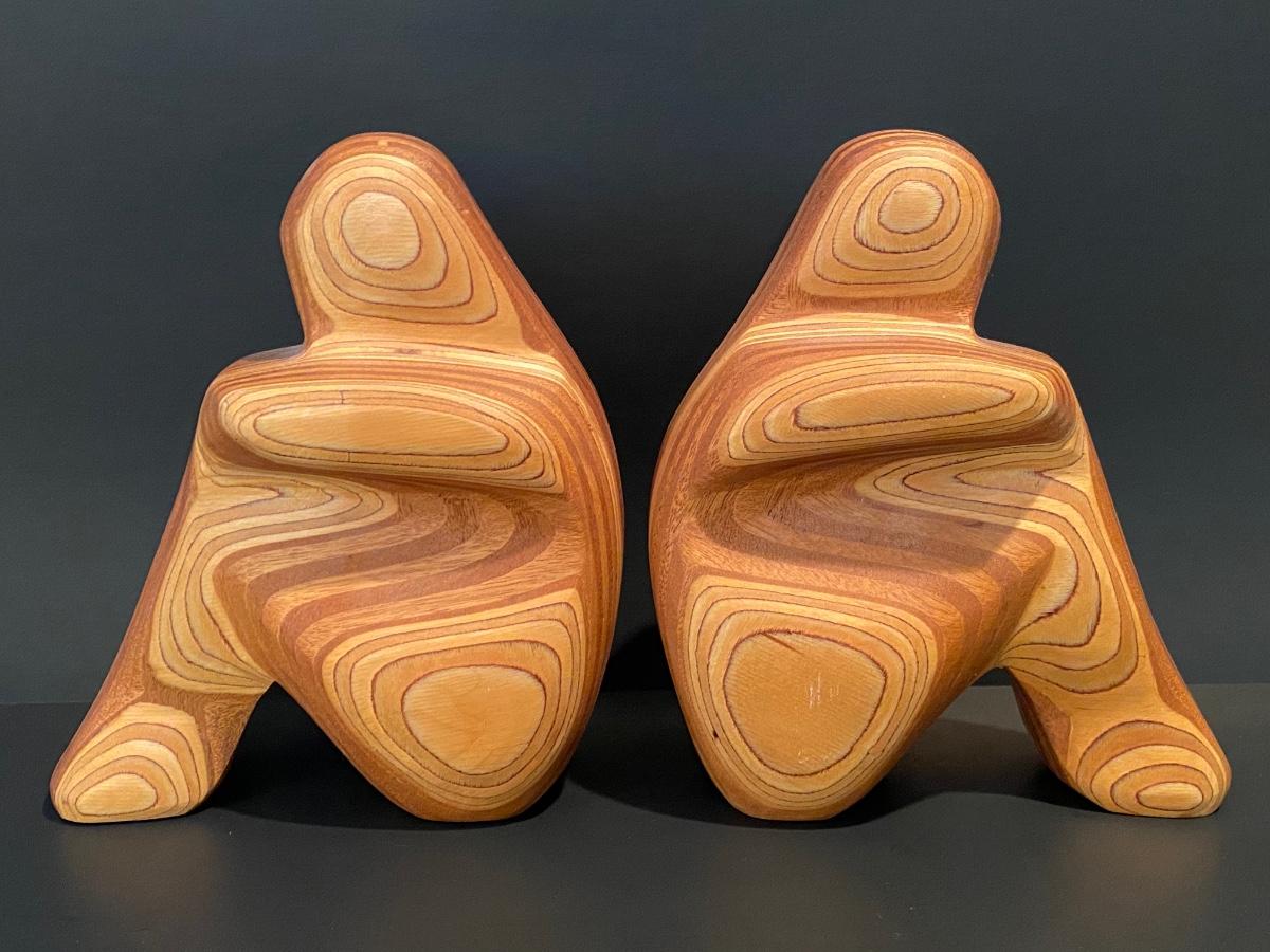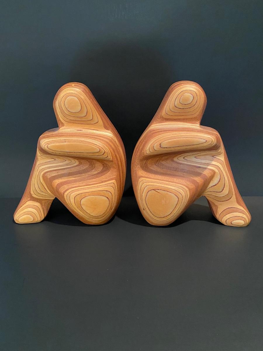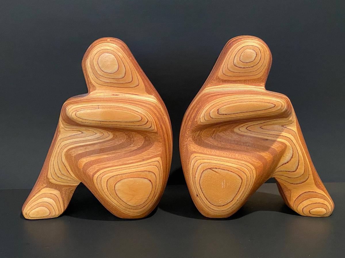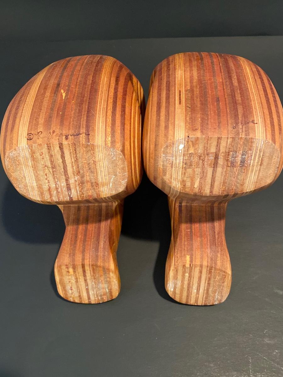 LOT 4:  Vintage Handcrafted Signed Wooden Bookends