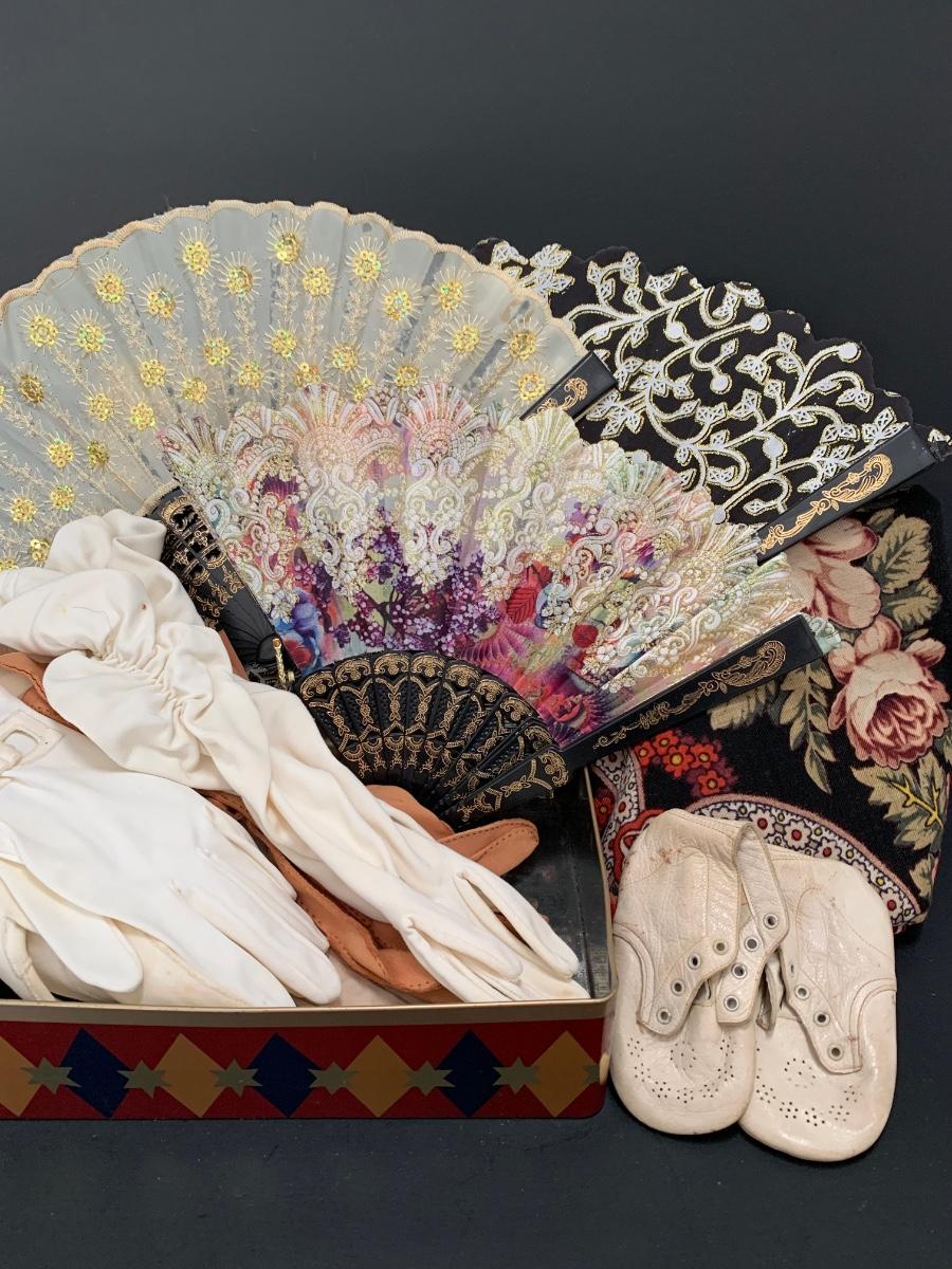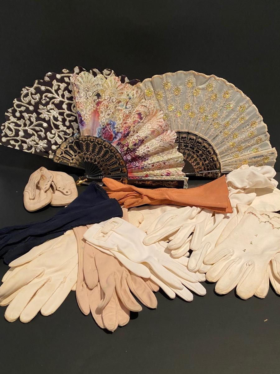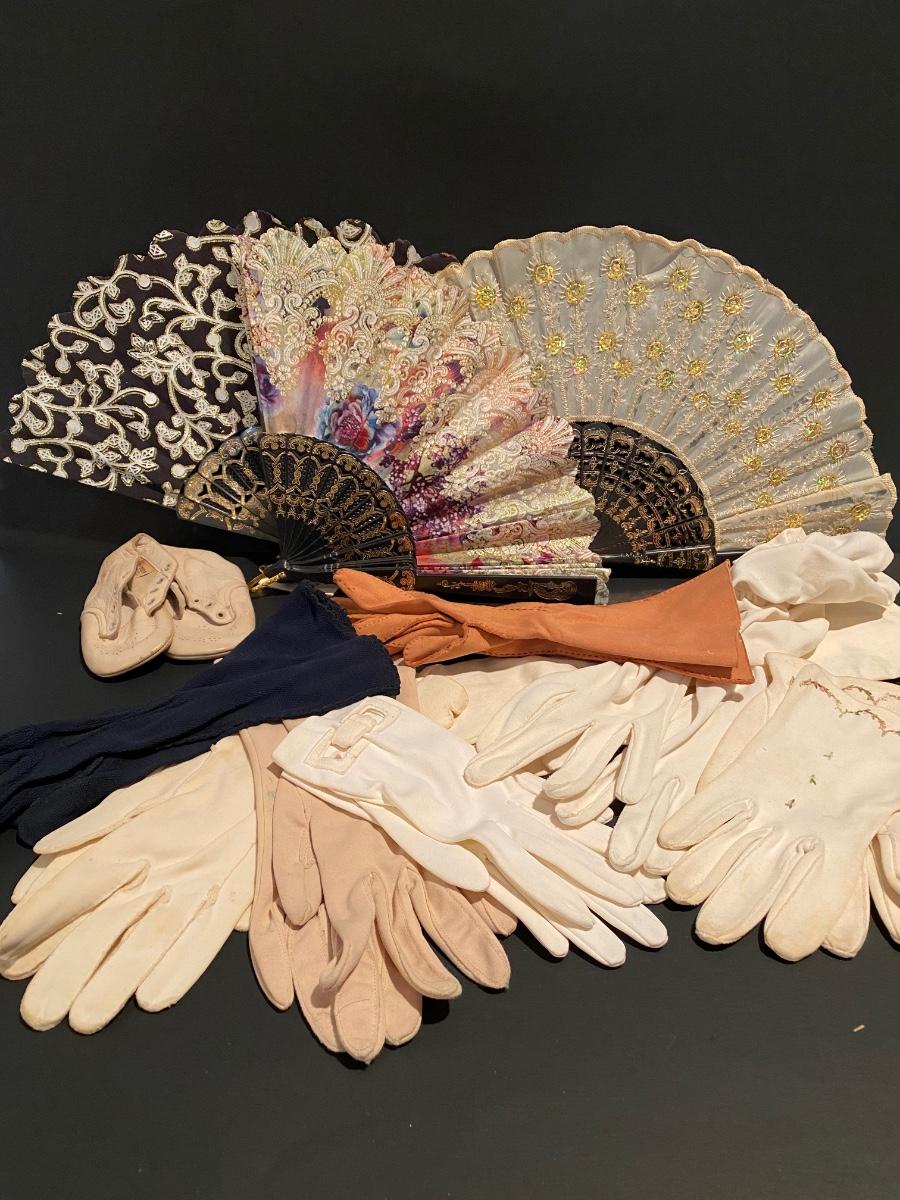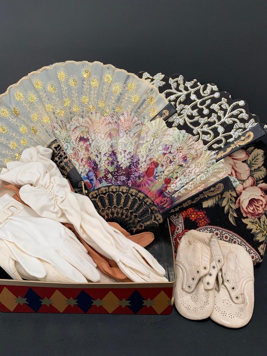 Collection include a 58 x 58 beautiful floral shawl, vintage gloves and fans