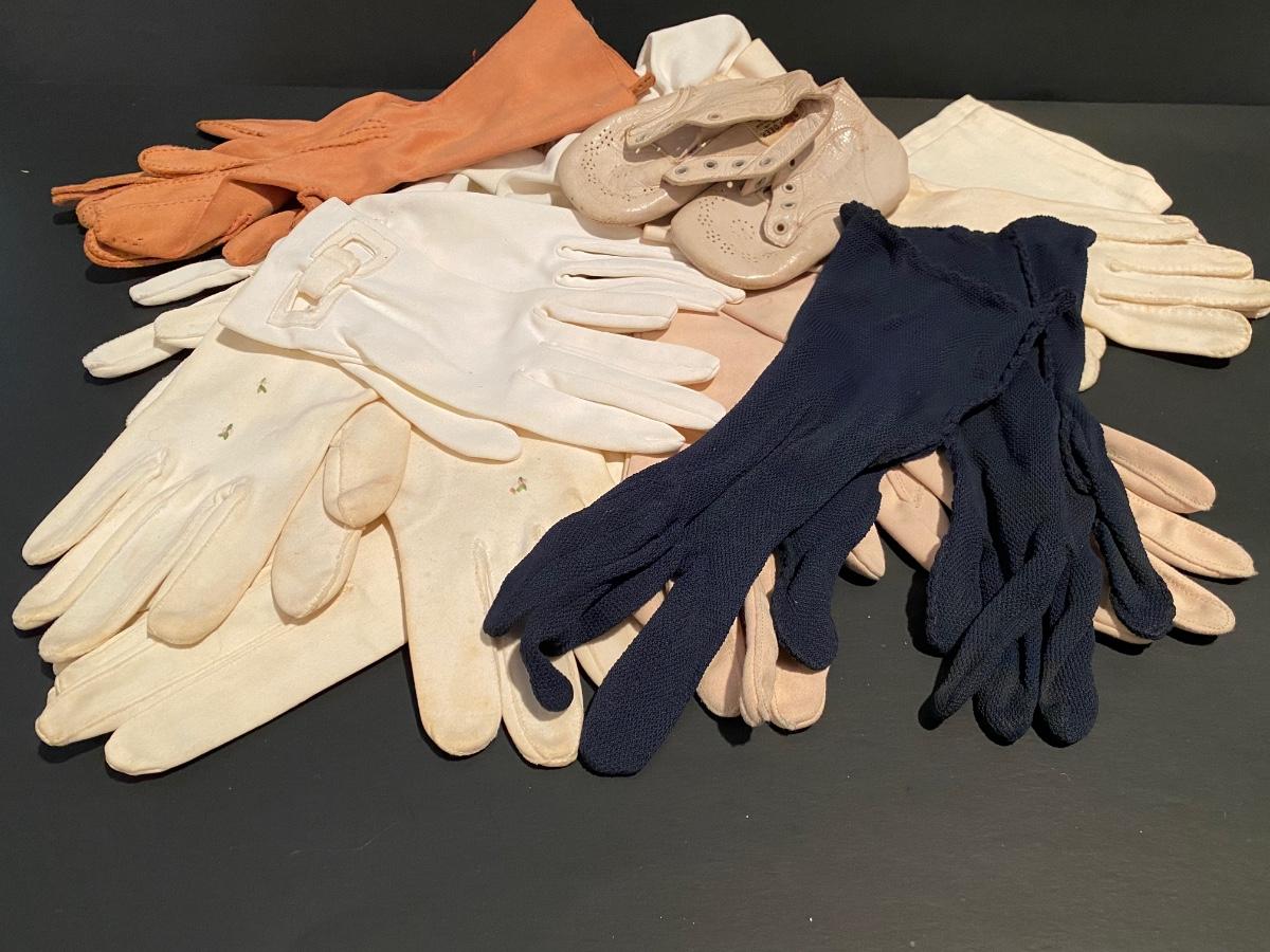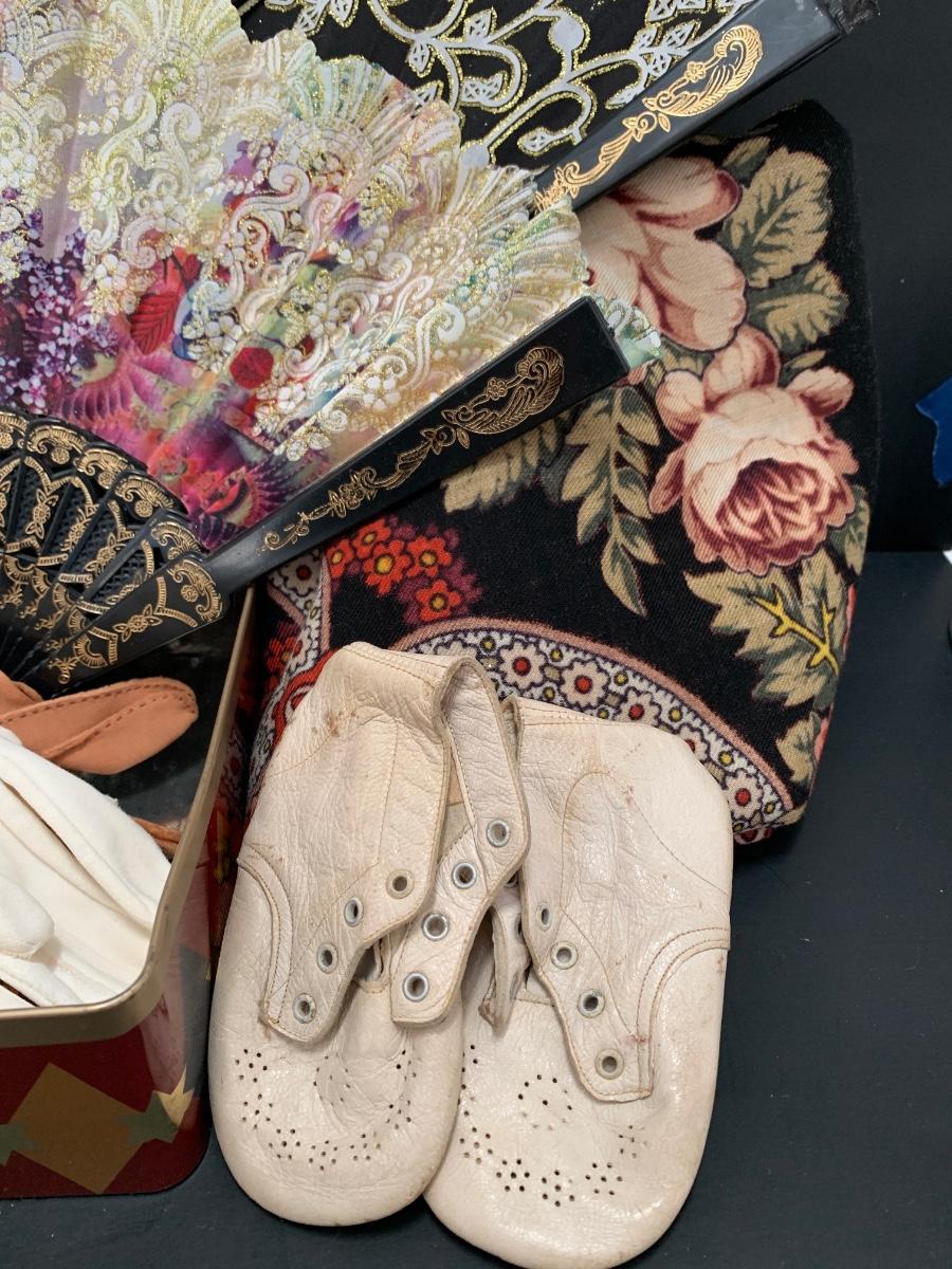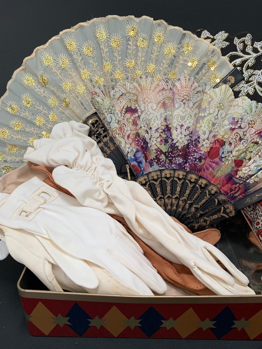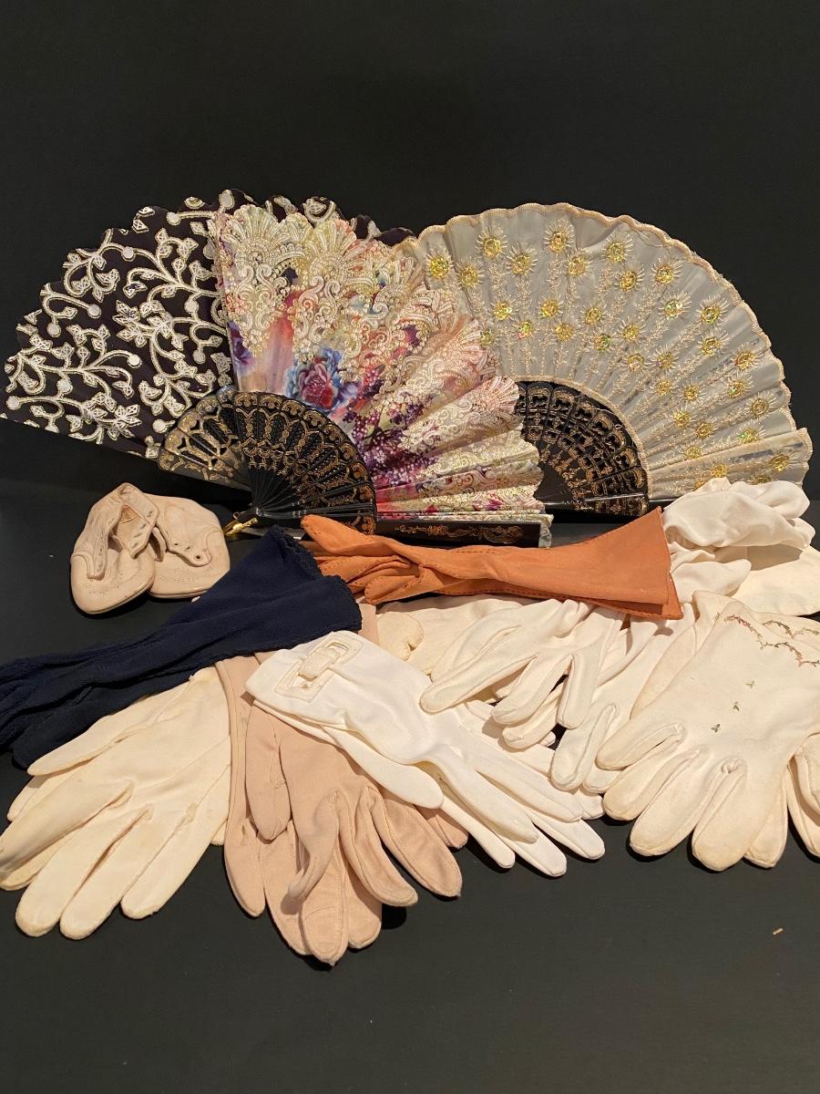 Collection include a 58 x 58 beautiful floral shawl, vintage gloves and fans