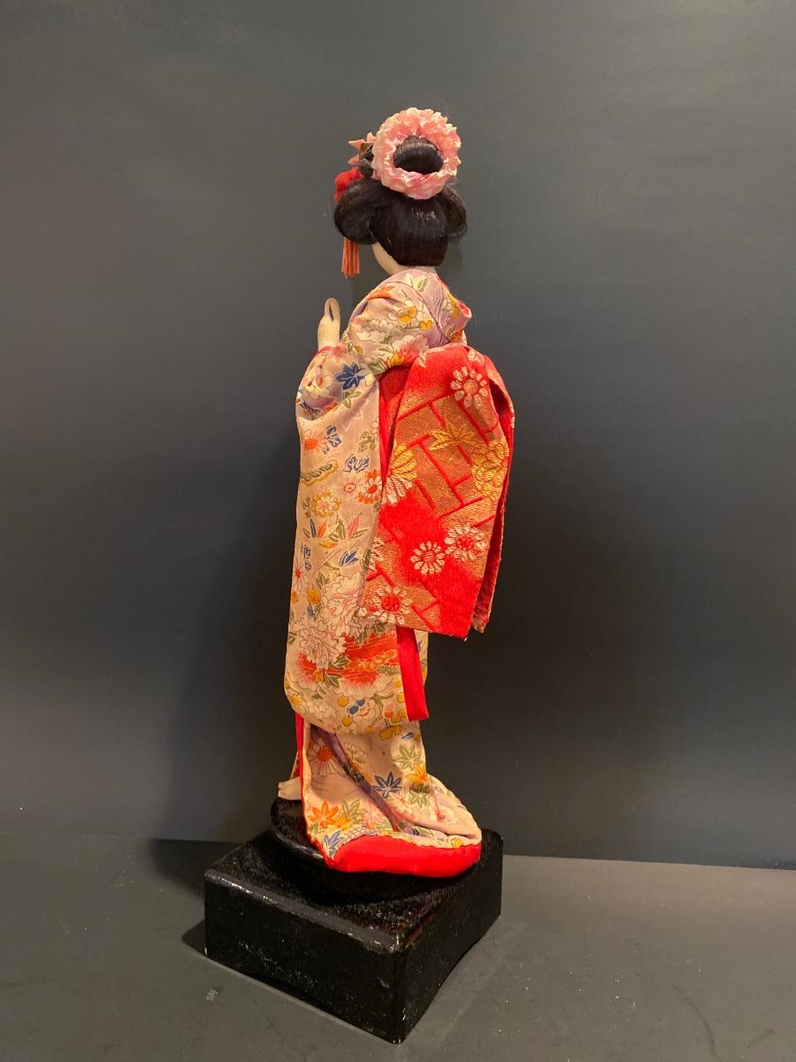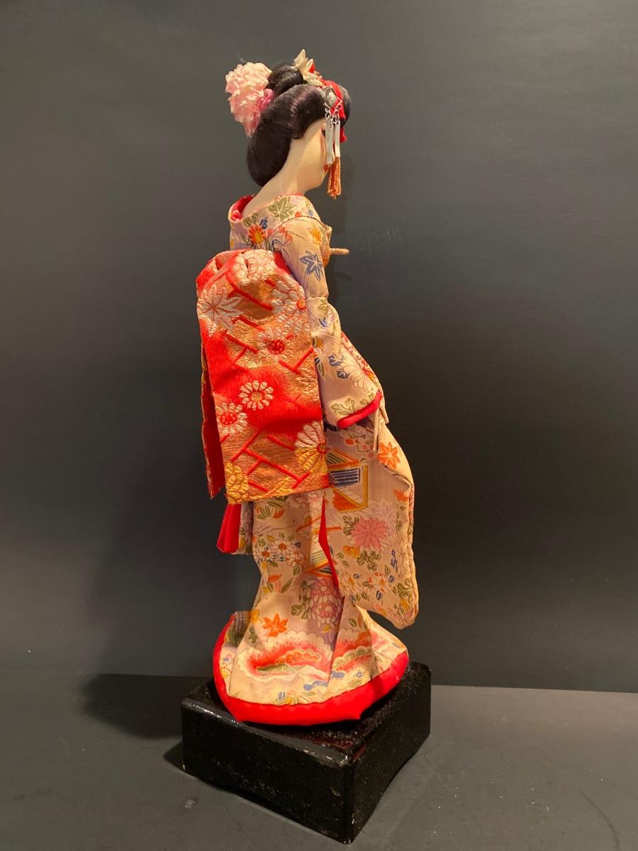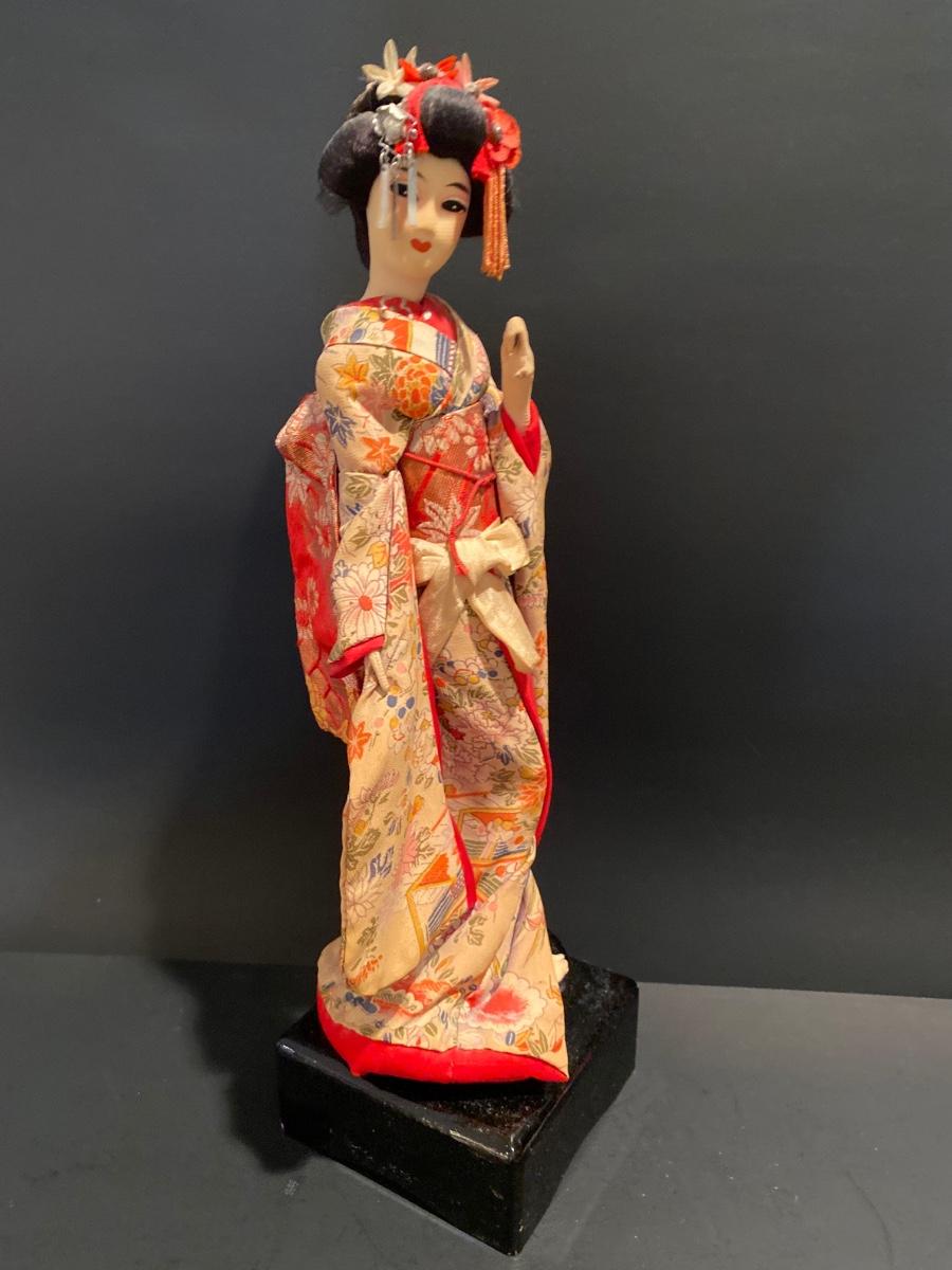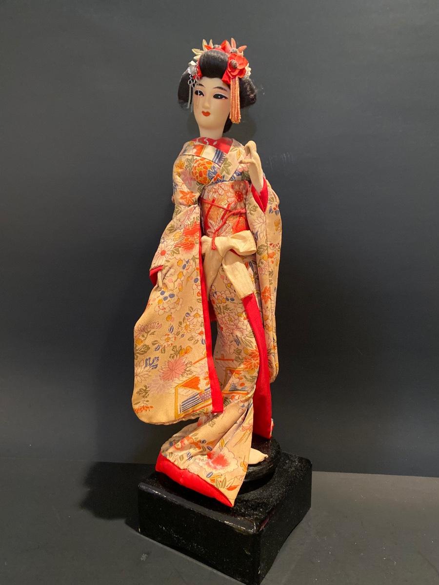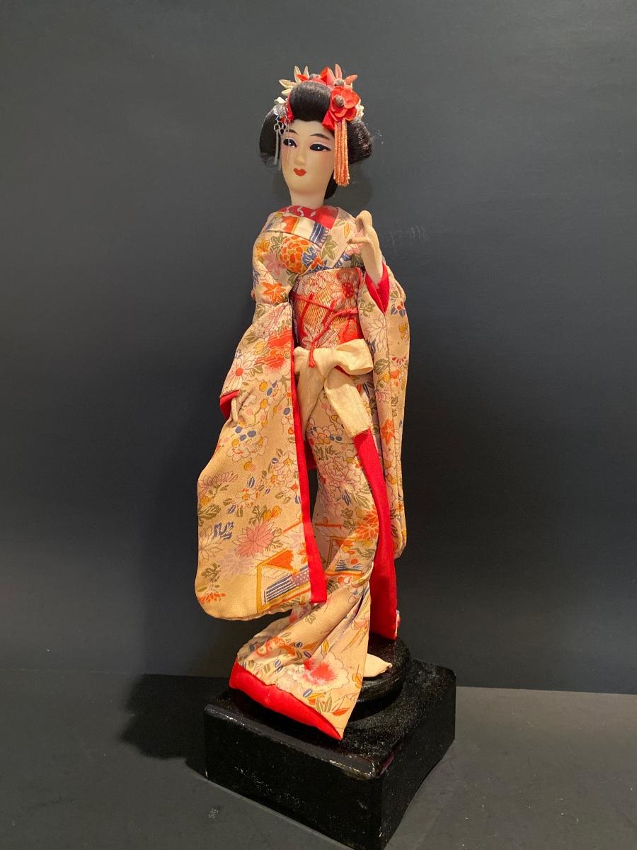 LOT Geisha Doll on Stand & Asian Themed Fan