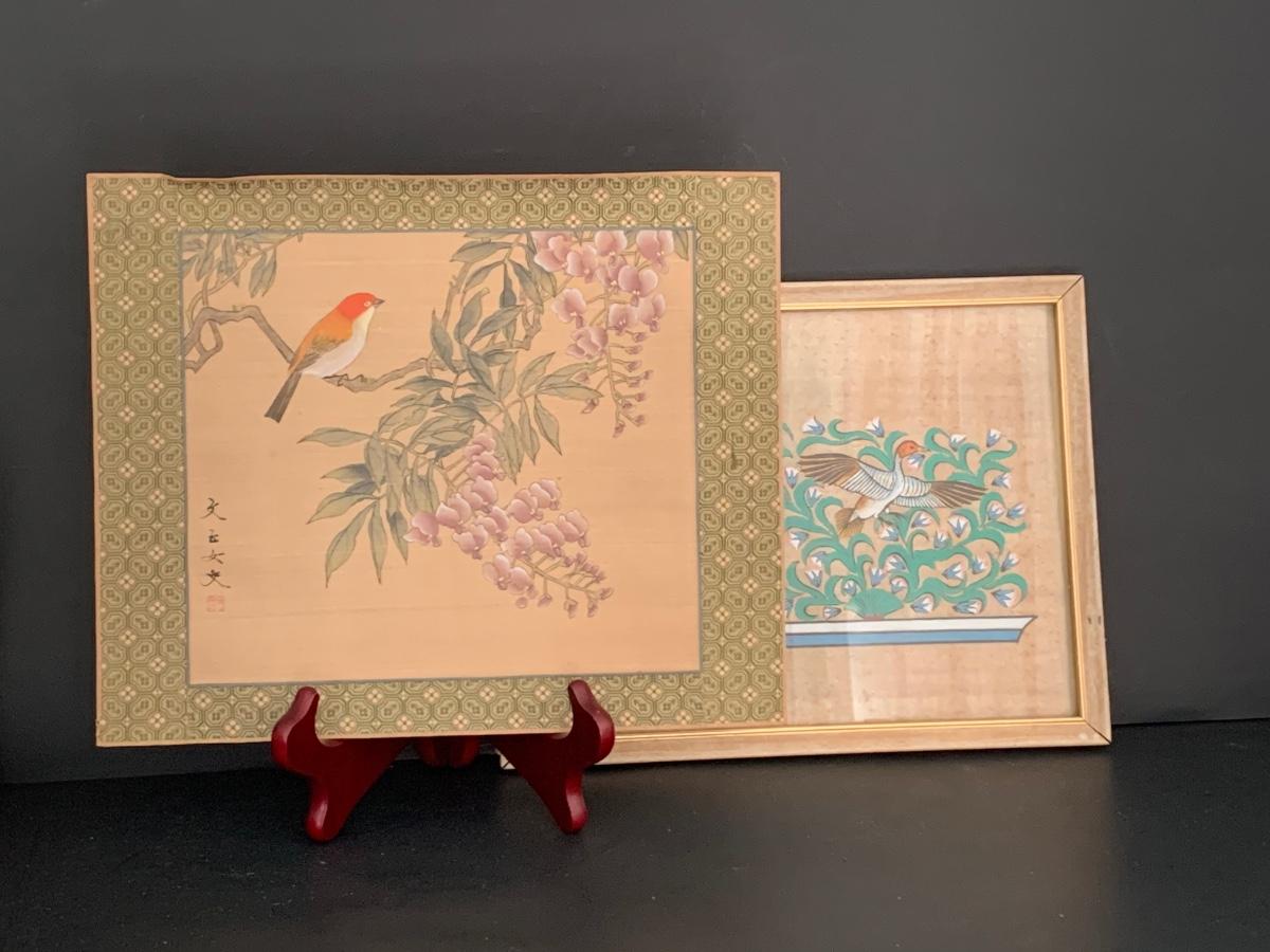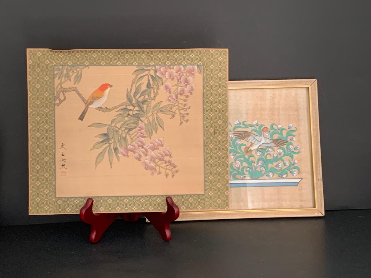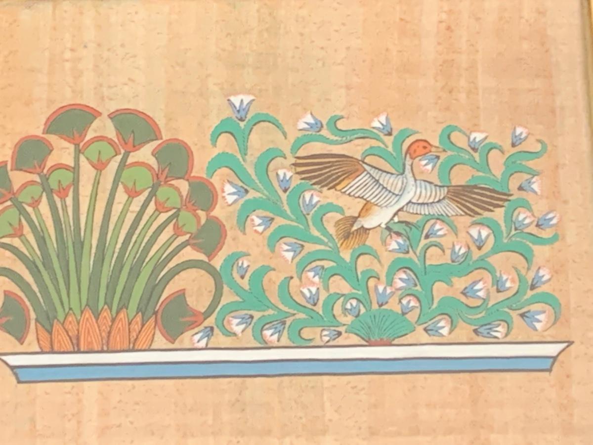 LOT 23: Certified Papyrus Paper Painting & Bird in Tree Painting